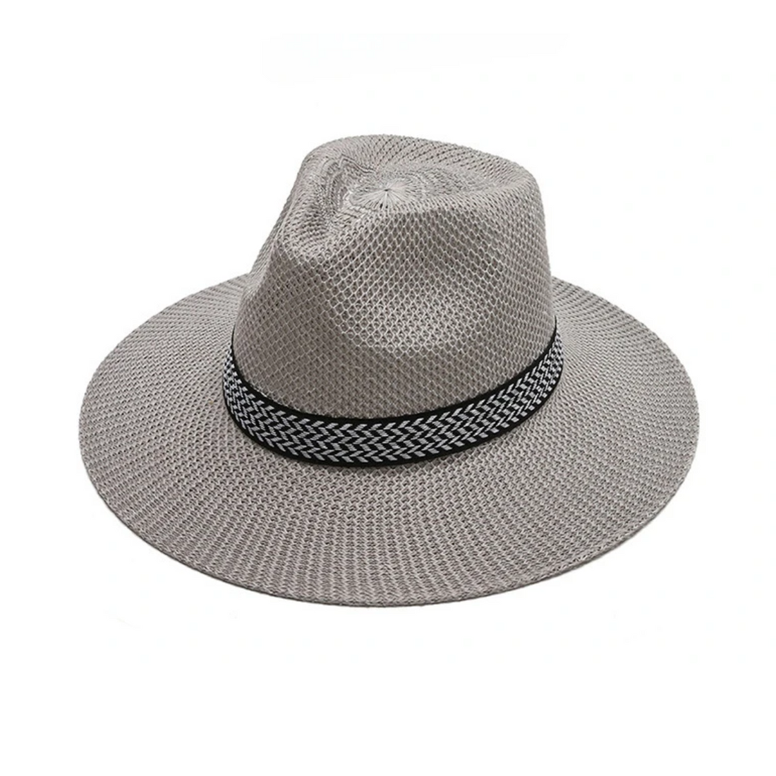 Casual Straw Wide Brim Hat with Genuine Leather Band