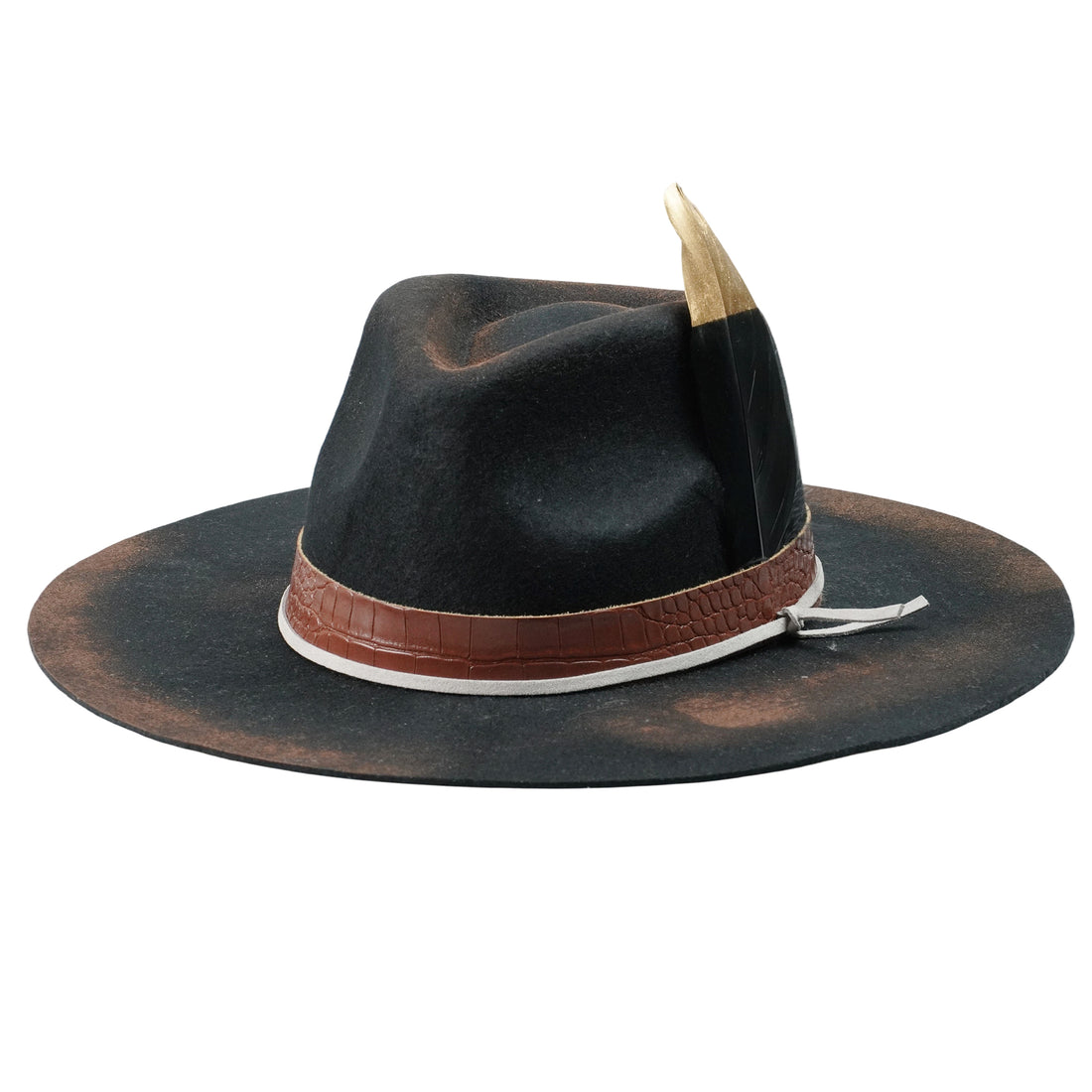 Distressed Felt Hat – Croc-Texture Band, Feather Accent
