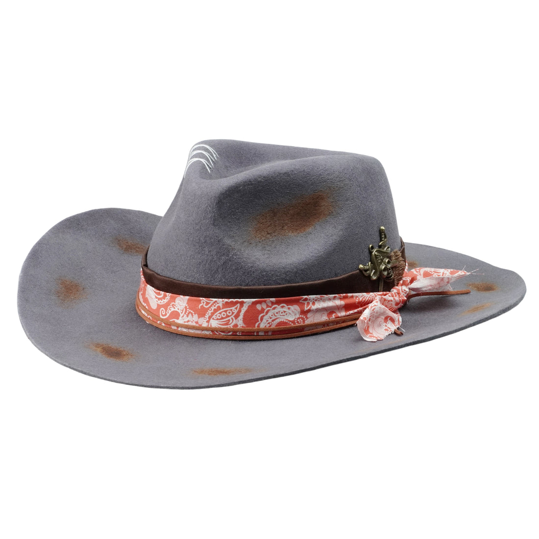 Statement Felt Hat – Distressed Finish, Custom Fabric Trim