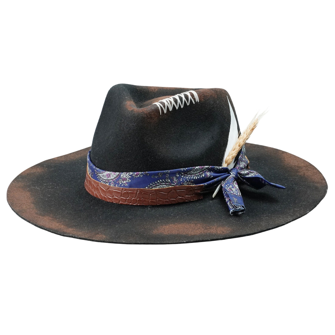 Refined Felt Hat – Burnt Finish, Eclectic Band Accent