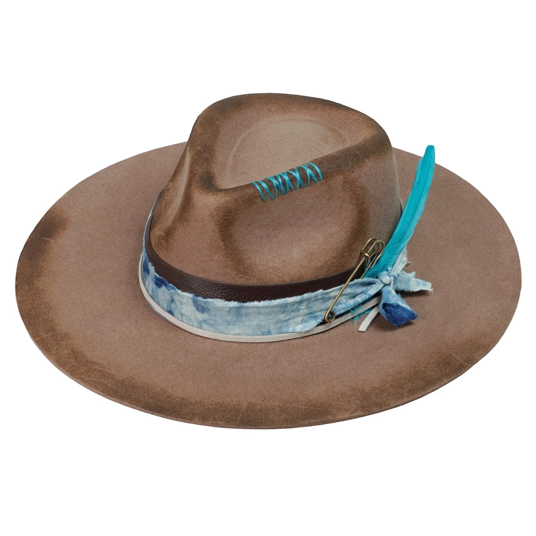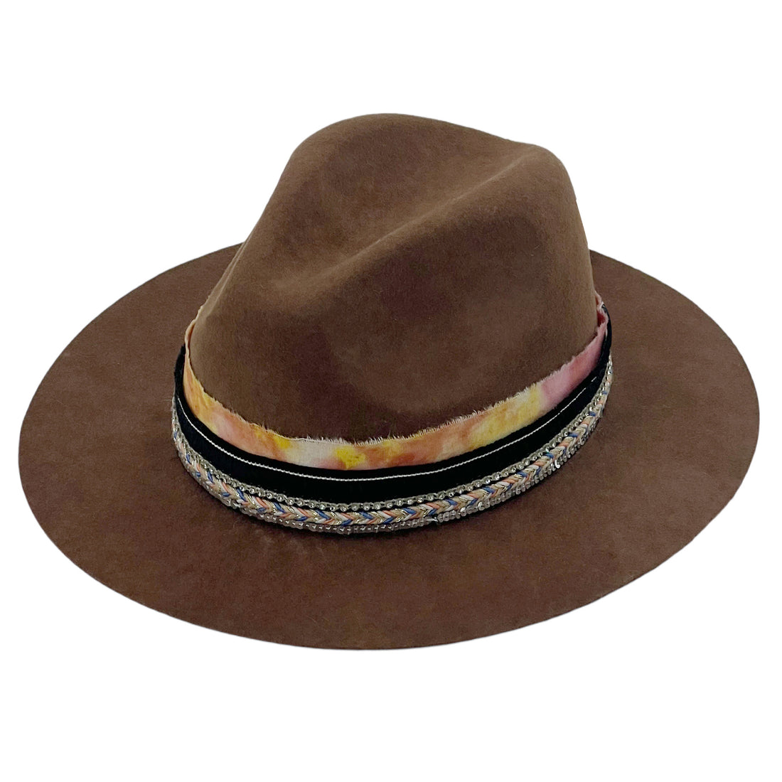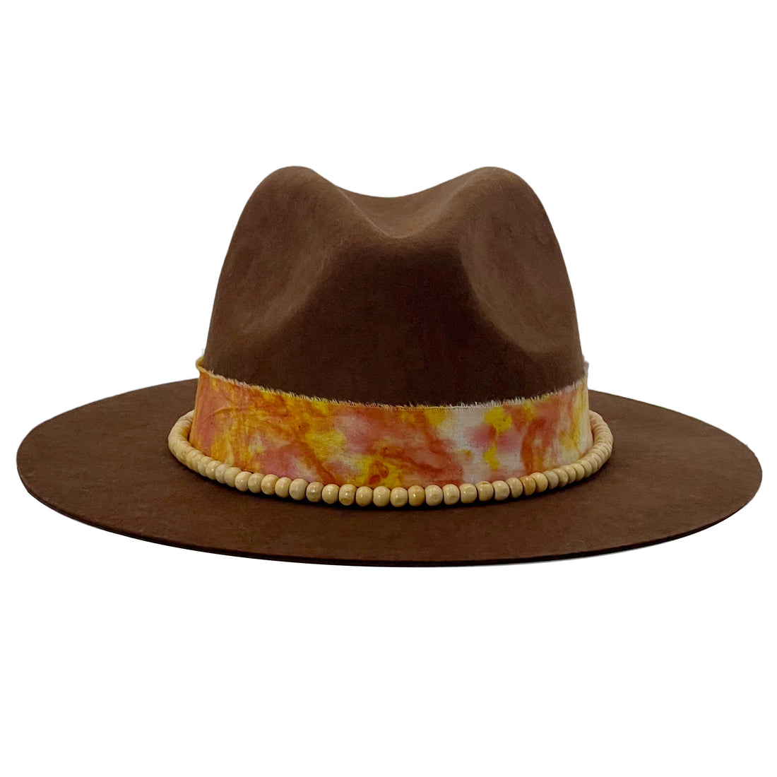 Brown Felt Hat – Custom Tie-Dye & Bead Trim