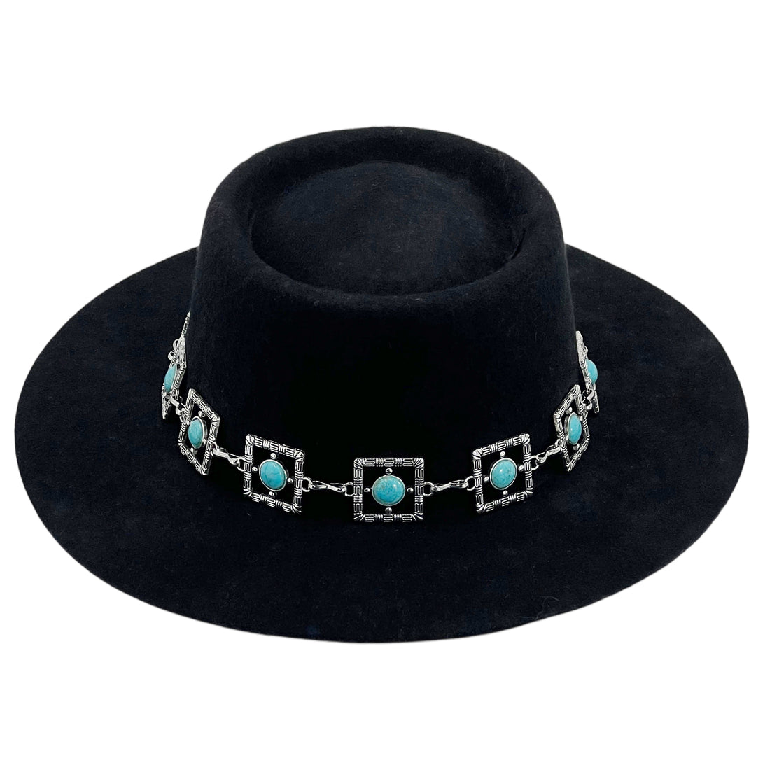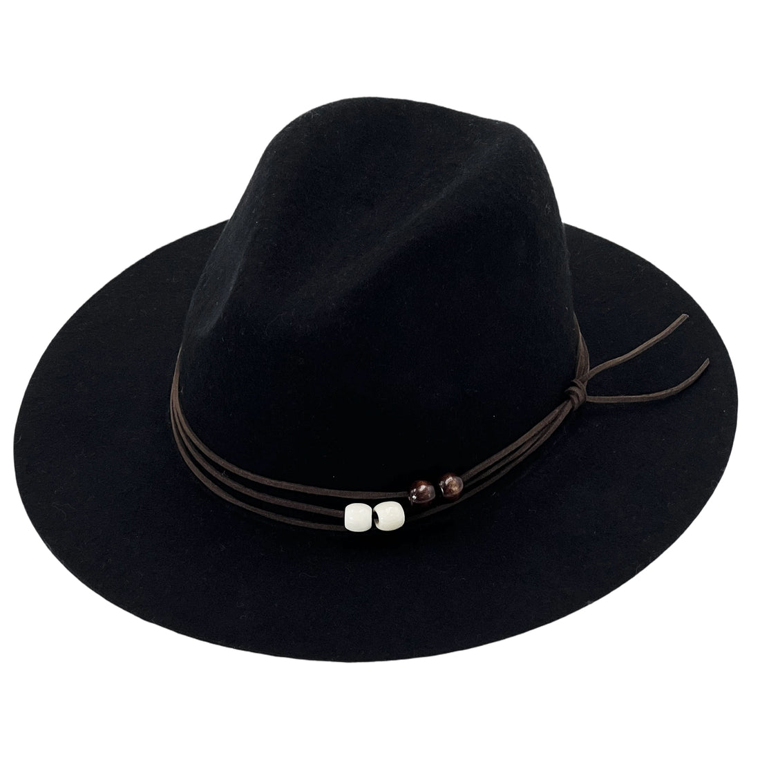Black Flat-Brim Fedora – Custom Beaded Band