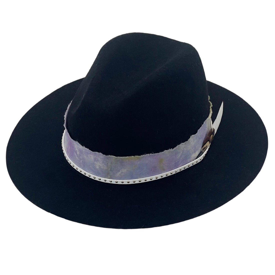 Black Flat-Brim – Purple Tie-Dye & Feather Band