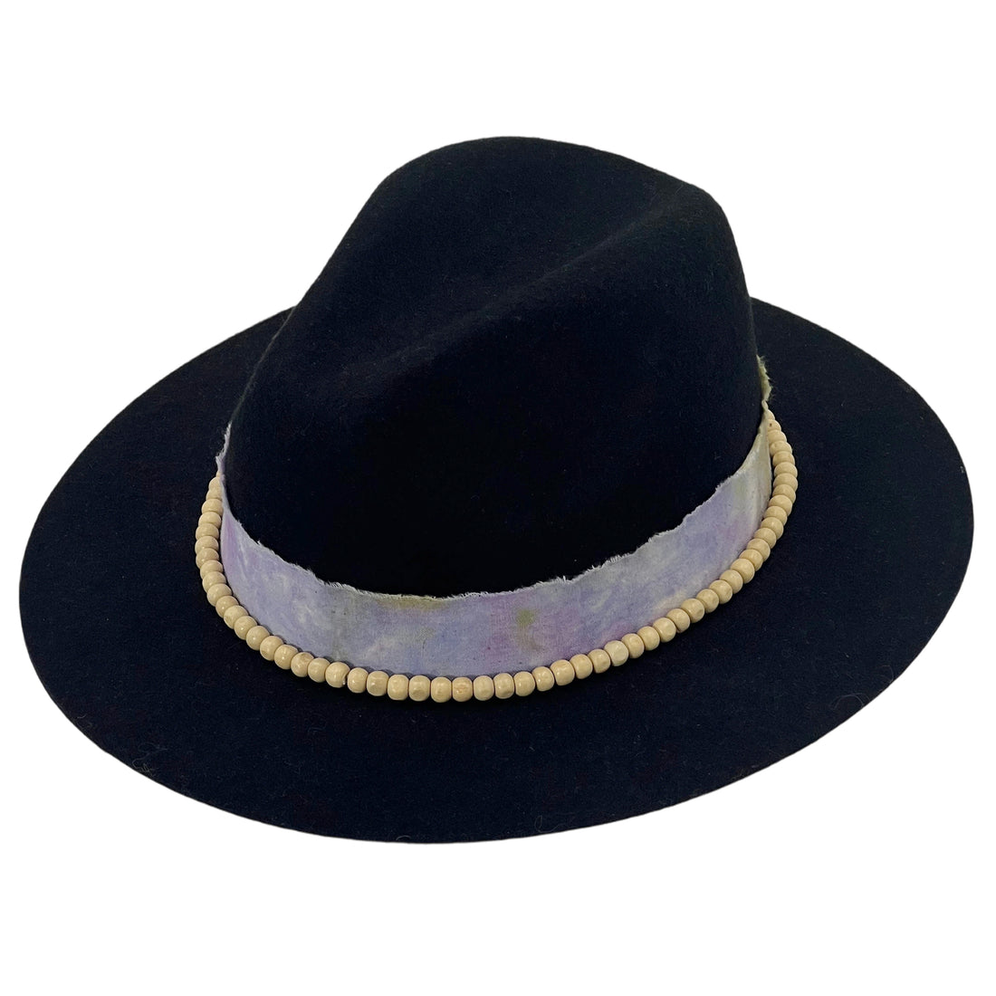 Black Flat-Brim – Purple Tie-Dye & Beads