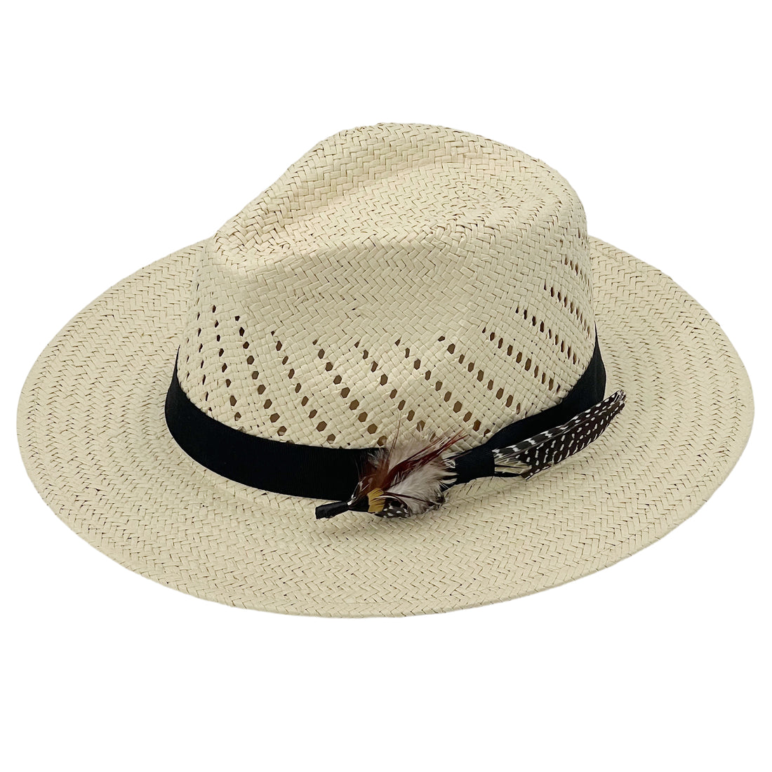 Soft Beige Straw Hat – Feather Accent Band