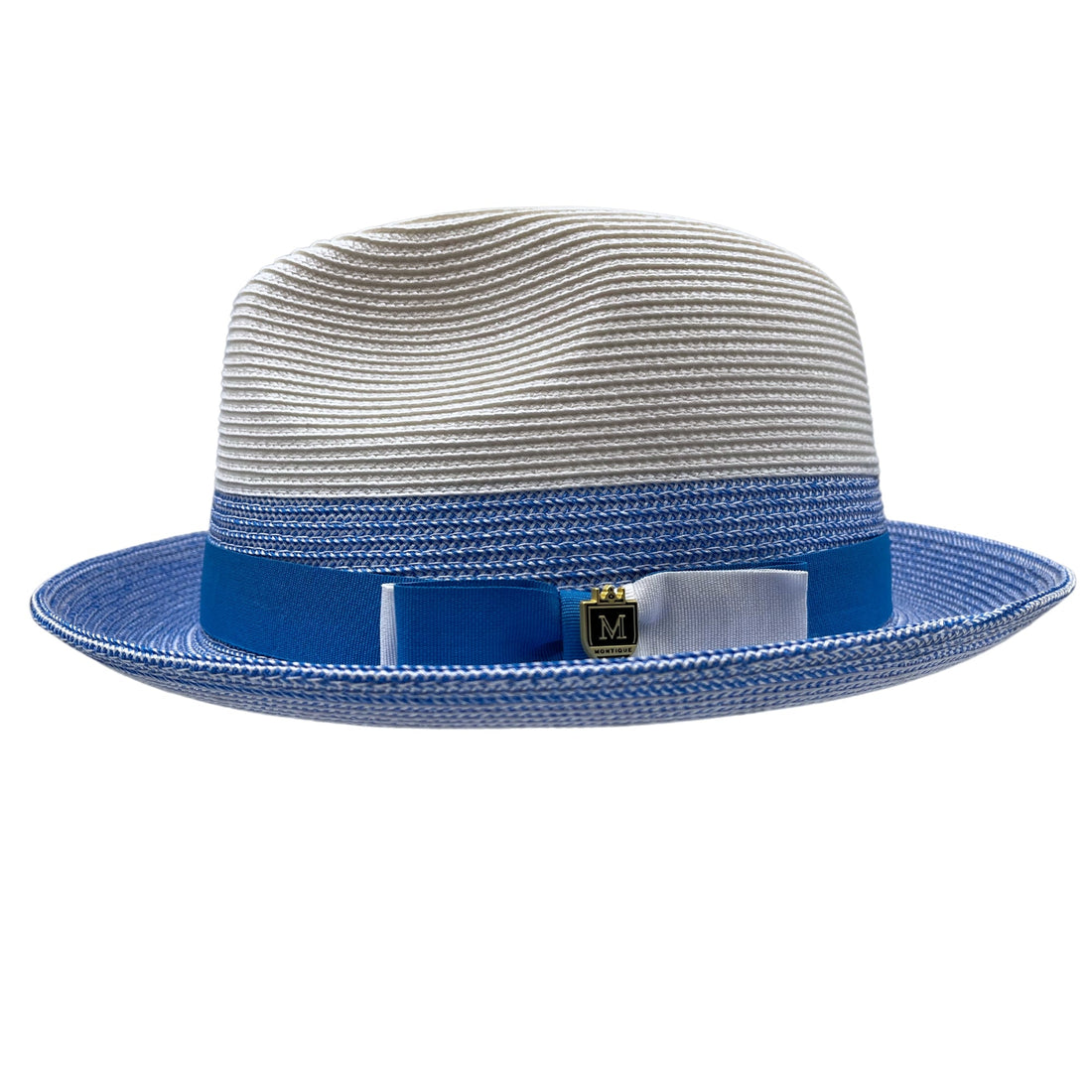 Two Tone Braided Stingy Brim Pinch Fedora Hat in Carolina Royal