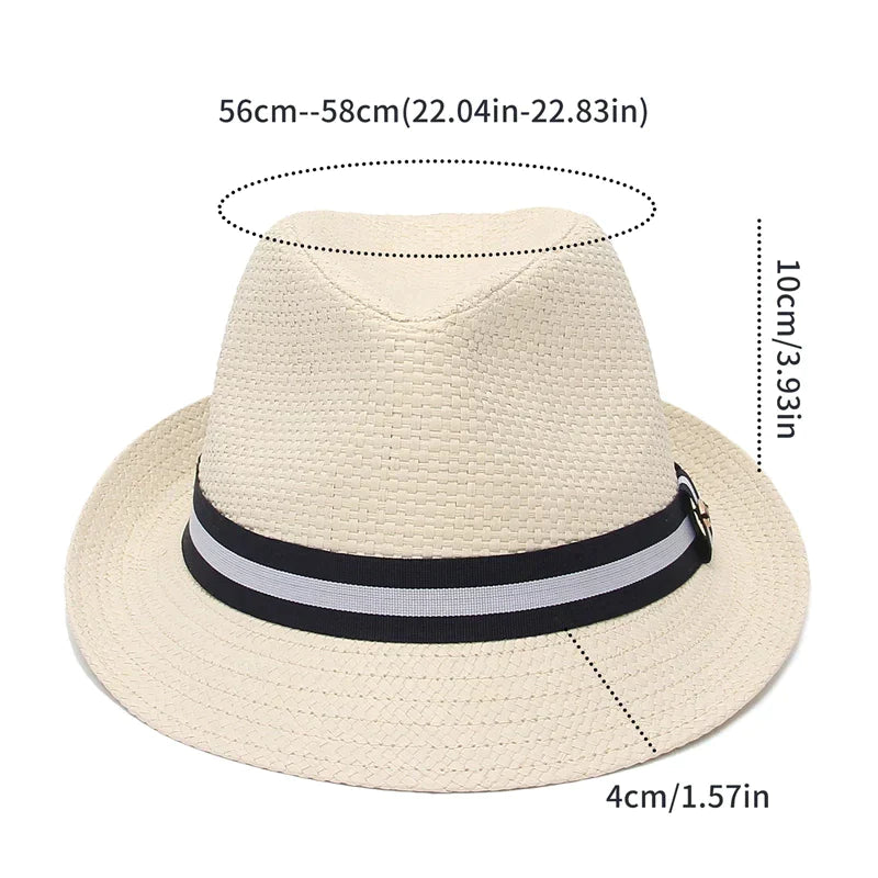 Elevate your style with this fashionable Panama cap. Designed for both men and women, this straw hat adds a touch of sophistication to any outfit. Whether you're strolling through the city or relaxing at the beach, this Panama gentleman hat is the perfect accessory for a stylish and sun-safe look.