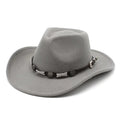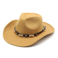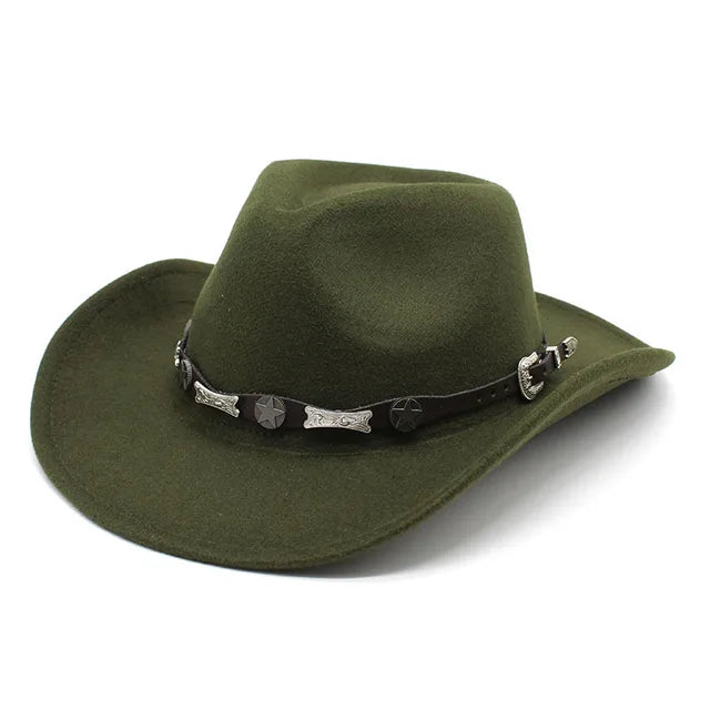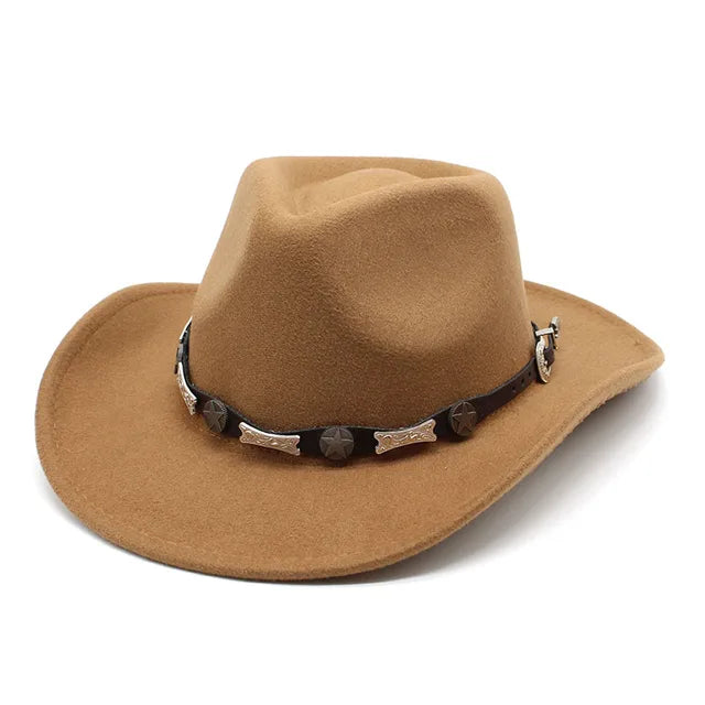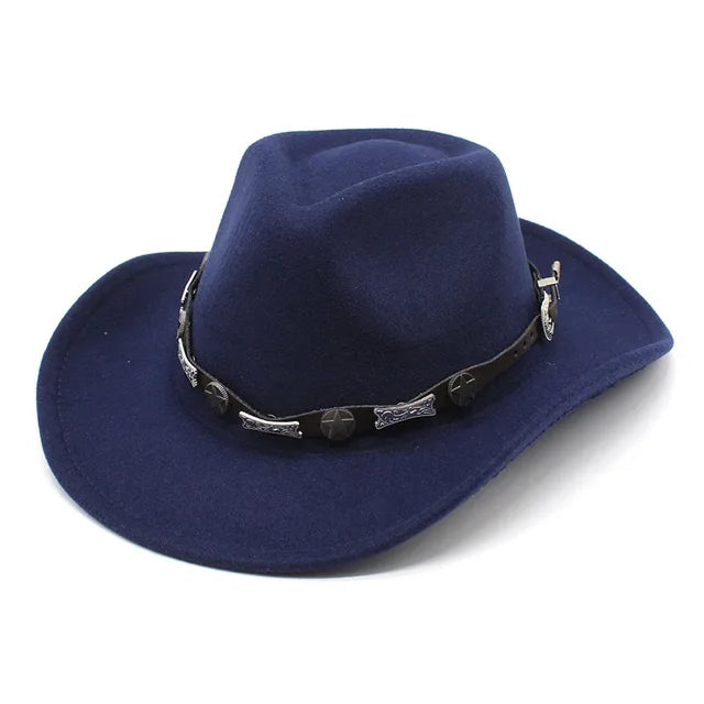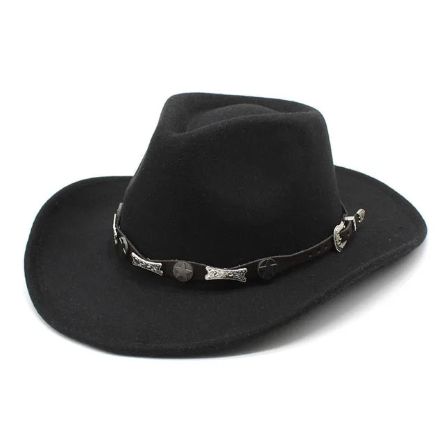 Experience the charm of British style with our Western Cowboy Hat, perfect for men and women alike. Crafted with classic cowgirl felt and leather accents, this hat exudes sophistication and jazz flair. Whether you're strolling through the countryside or attending a stylish event, embrace the timeless elegance of this versatile accessory. Step out in confidence with this stylish addition to your wardrobe.