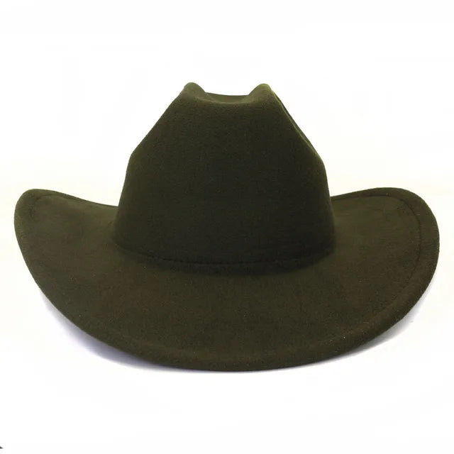 Embrace winter style with our Classic Wool Western Cowboy Hat. Designed for both men and women, this hat is crafted from high-quality artificial wool, offering warmth and elegance. Whether you're a gentleman or a cowgirl, this versatile hat adds a touch of jazz to your ensemble. Perfect for chilly autumn and winter days, it's a stylish addition to any wardrobe.