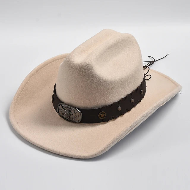Vintage Wide Brim Artificial Wool Cowboy Hat