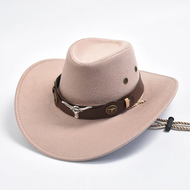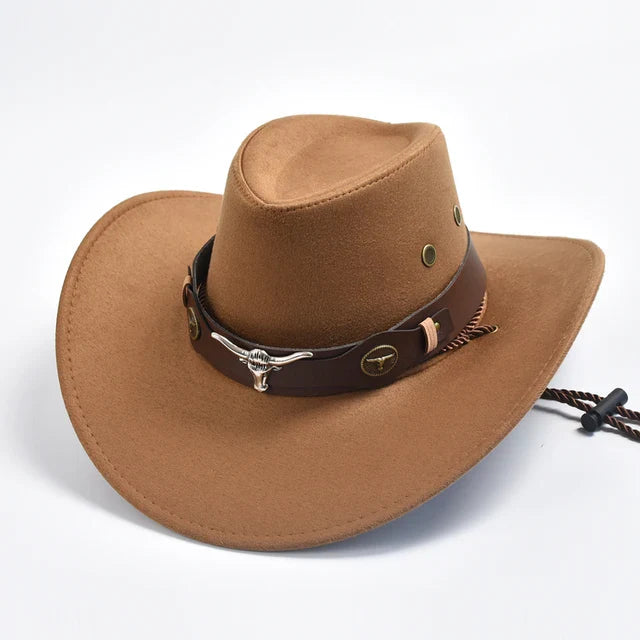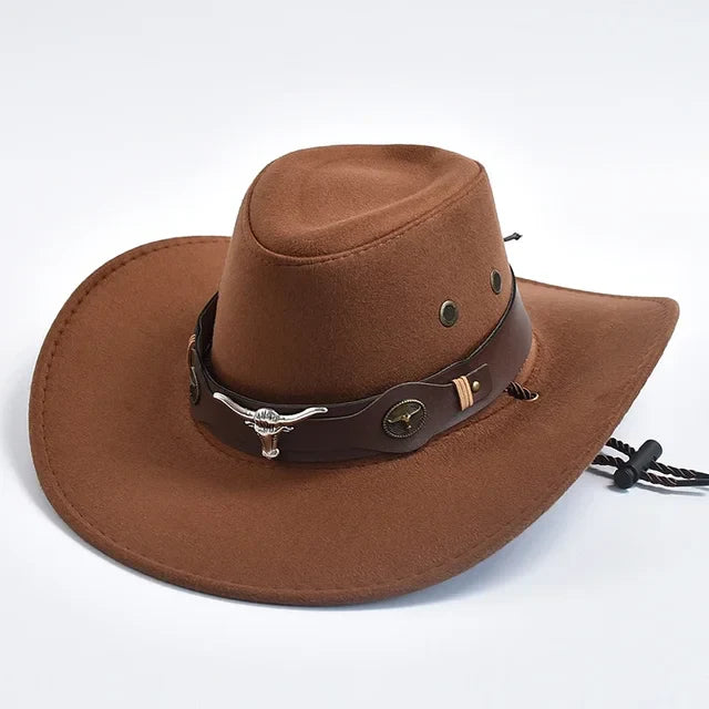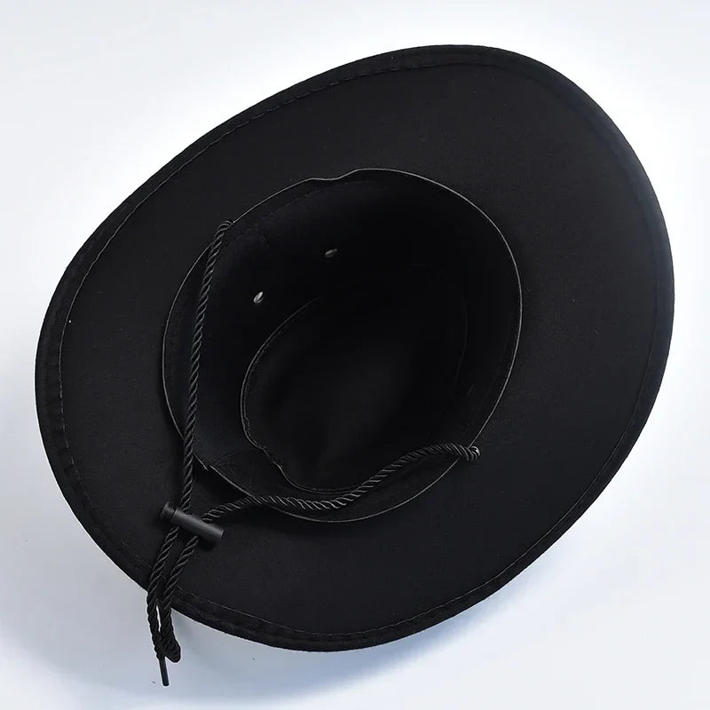 Dress up your western style with our Adjustable Wide Brim Suede Cowboy Hat. Designed for both men and women, this hat features an adjustable string for a customized fit. Whether you're a cowgirl or a gentleman, this versatile accessory adds a touch of jazz to any party or event. Crafted from high-quality artificial suede, it exudes sophistication and charm. Step out in style with this timeless western hat.
