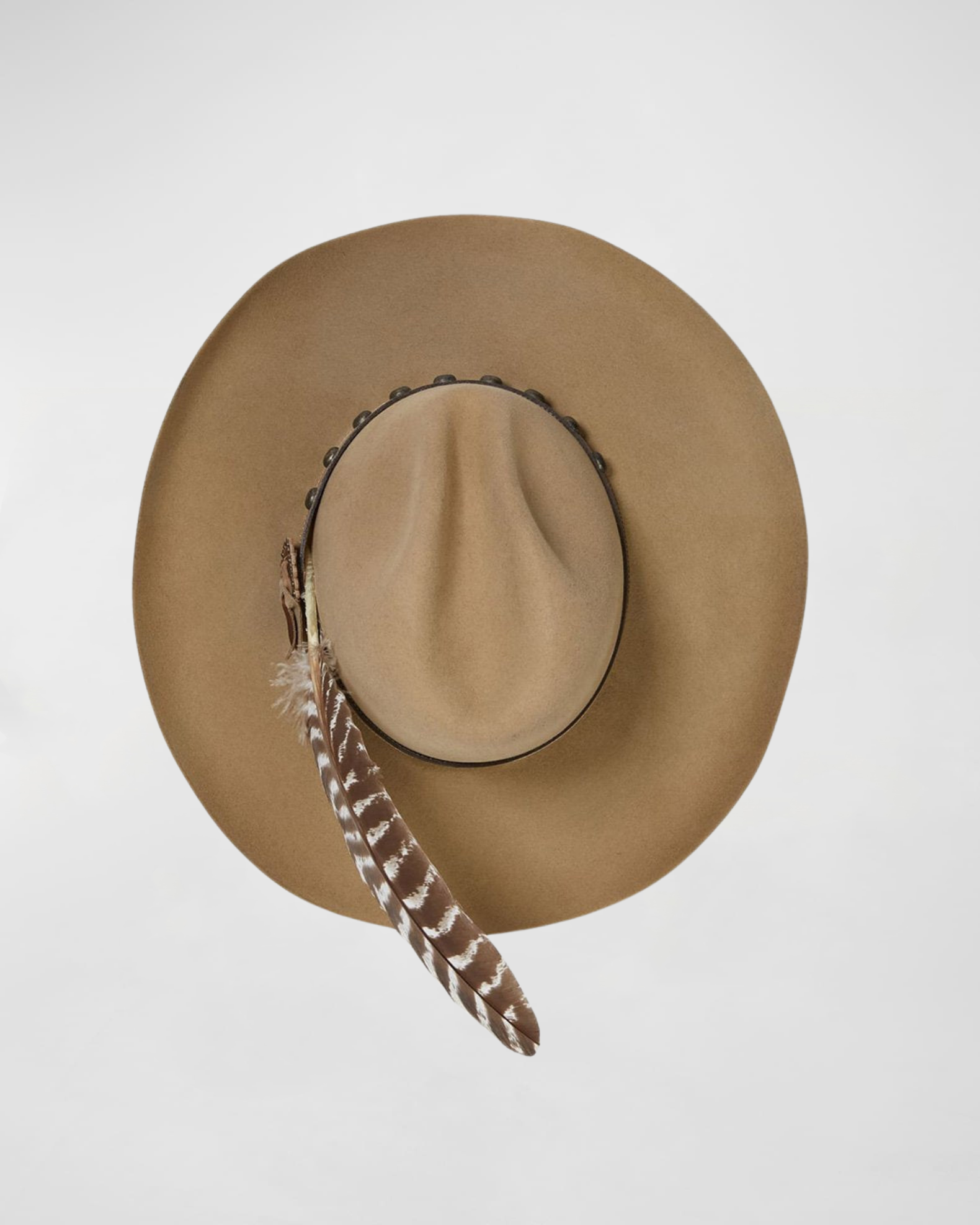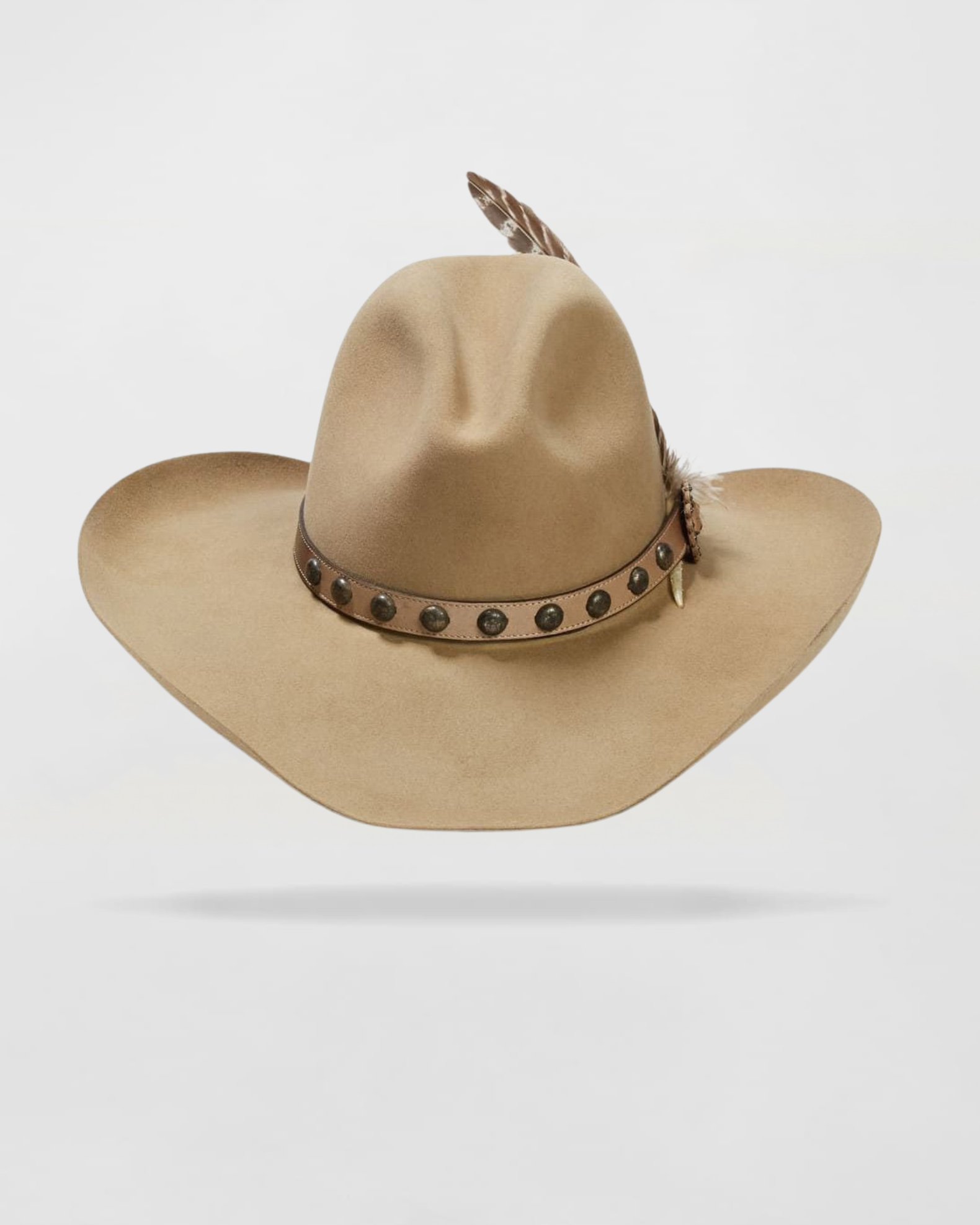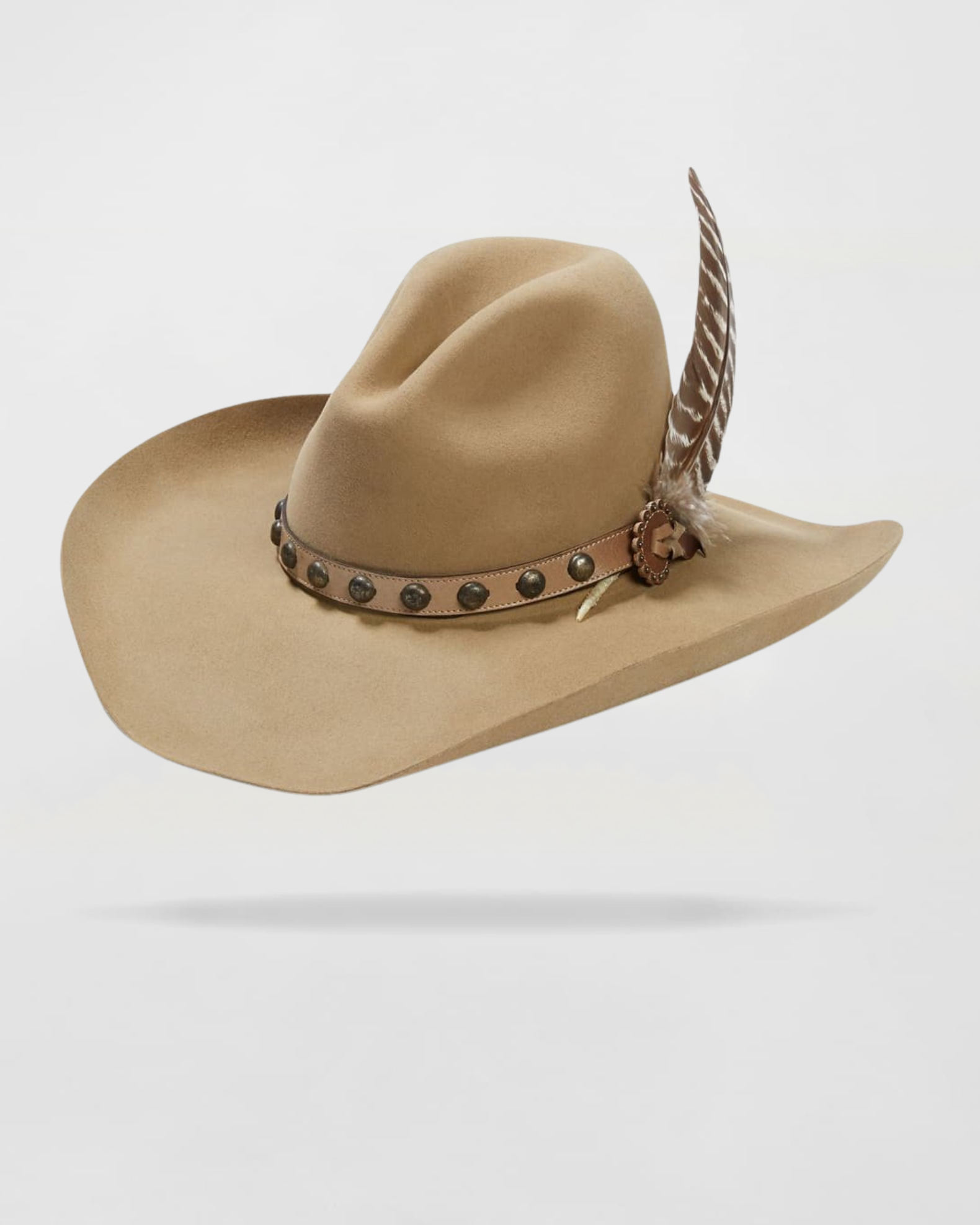 The Pioneer Pathway Line Felt Cowboy Hat in Tan is a timeless Cowboy hat that never goes out of style. Crafted from durable fabric and felt, it features a chic design and is one of our most versatile and easy-to-wear wool hat styles. This enduring essential is perfect for any adventure.