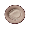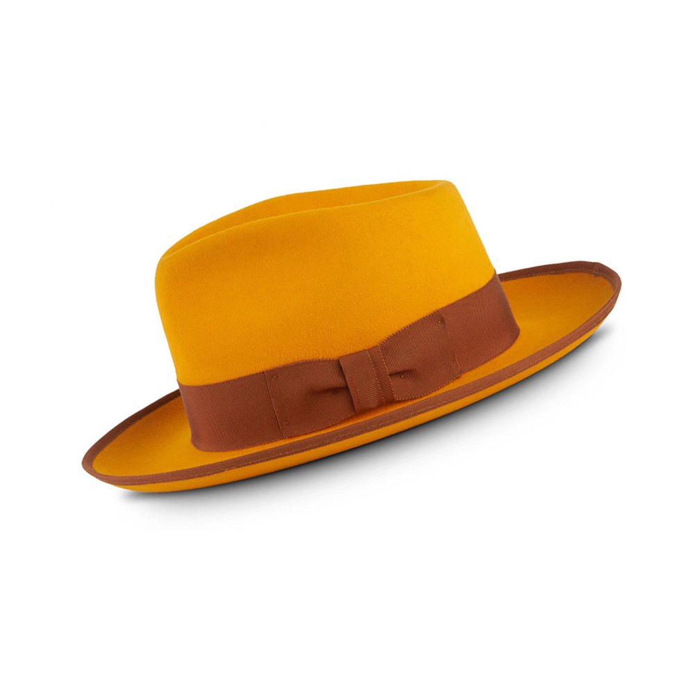 This Fedora reflects style on the outside and comfort on the inside. It features a 4.5-inch telescope crown and a 2.75-inch bound-edge brim. At the seat of the crown is a classic 1.5-inch ribbon that comes in contrasting colors to really make your hat stand out from the crowd. To add an extra touch of comfort and sophistication, the interior is lined with satin and a premium roan leather sweatband.