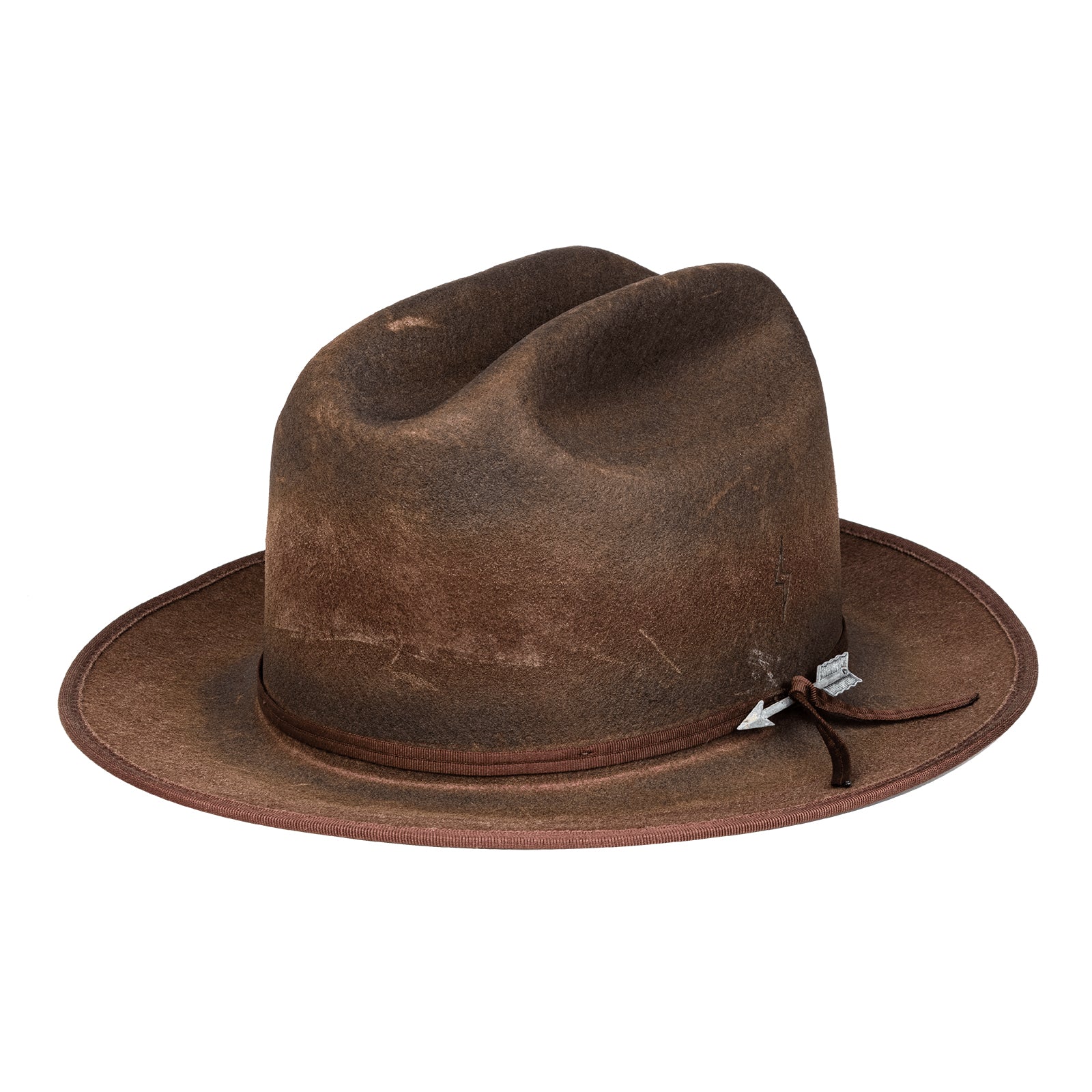 Distressed Finish Arrow Sign Felt Fedora Hat