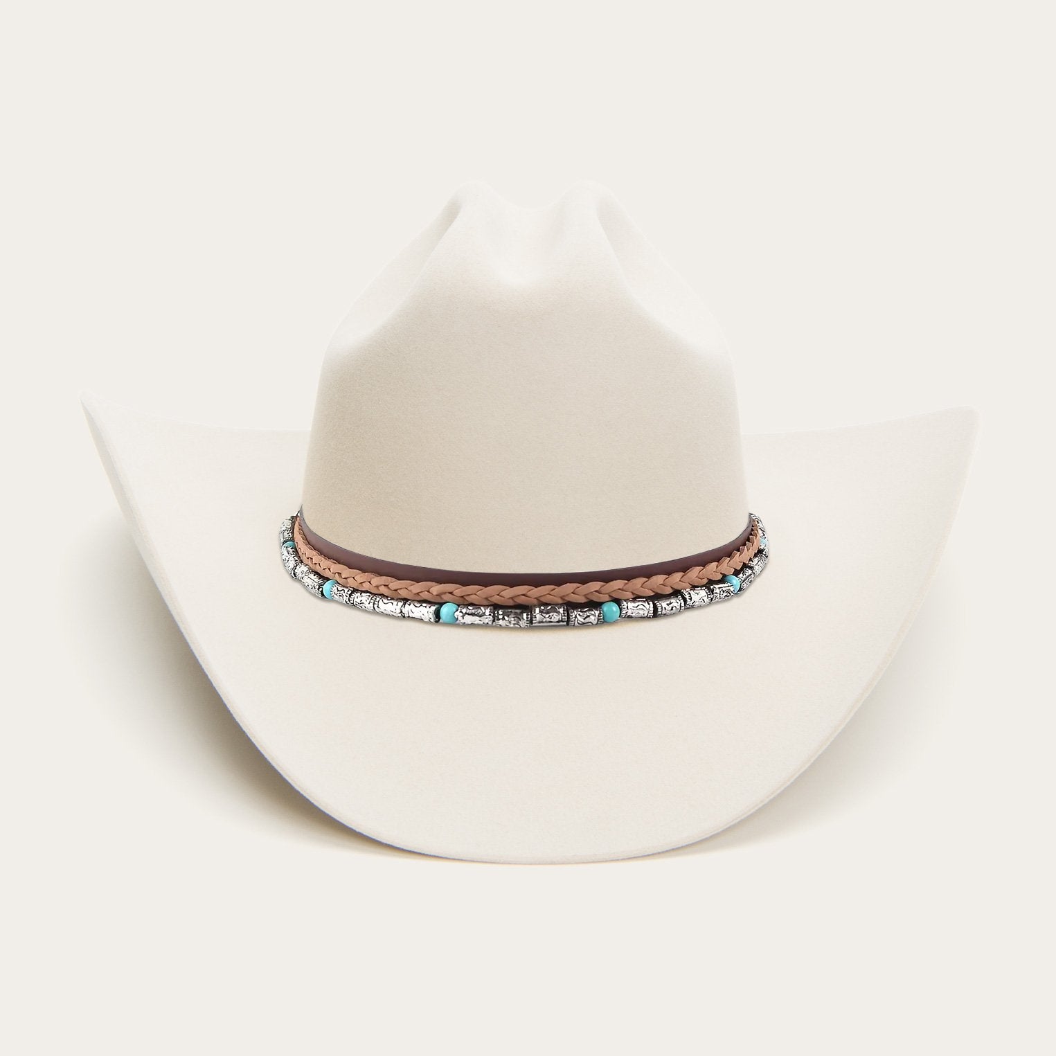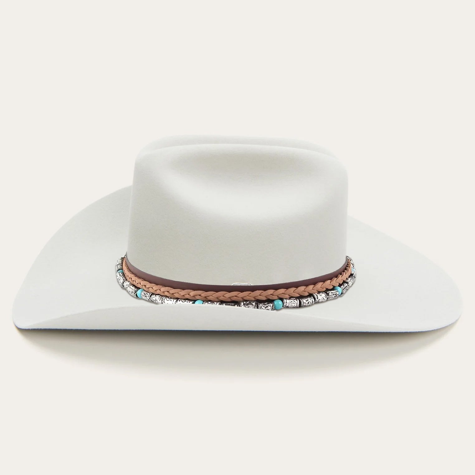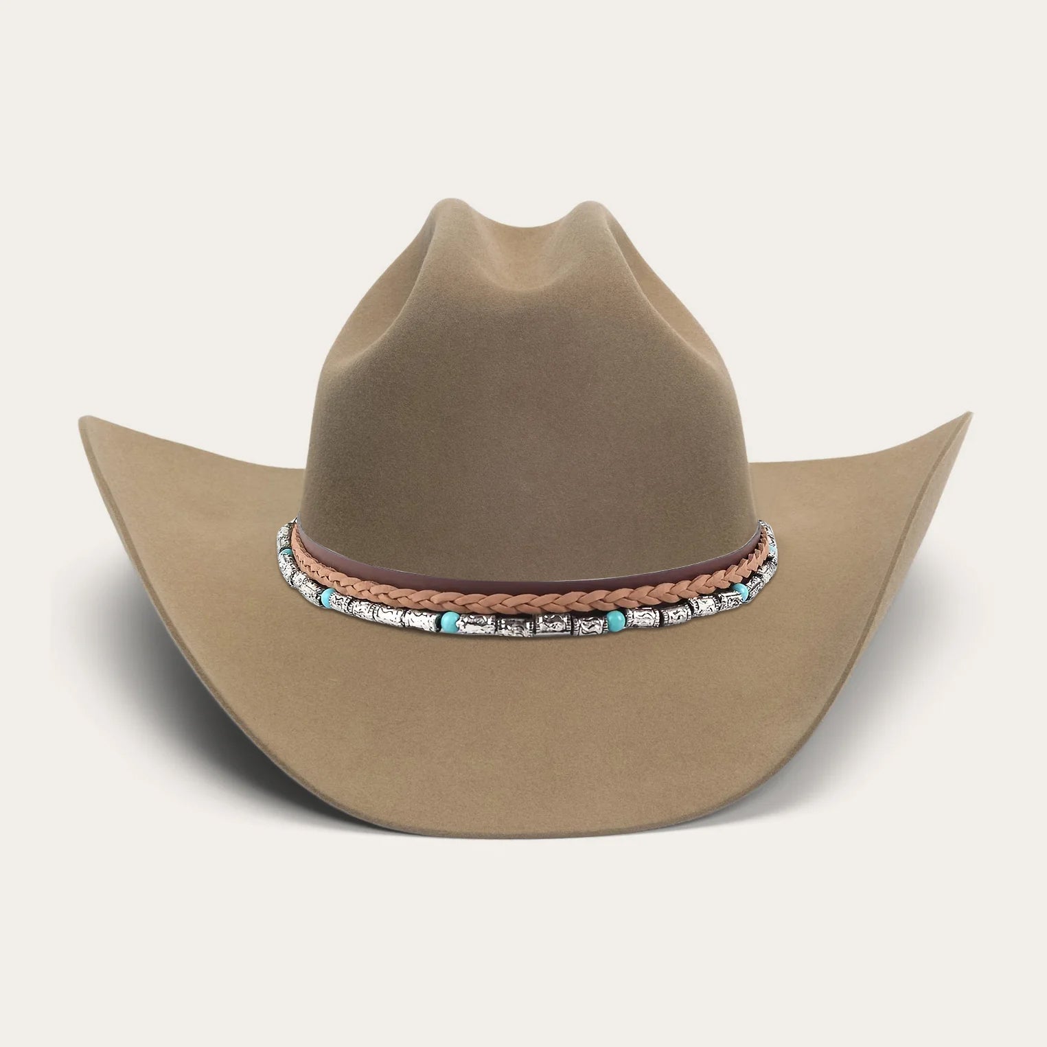 Elevate your style with this premium fur felt hat featuring a classic cattleman crown and a stylish Hatband. Crafted with quality sweatband and satin liner, this hat ensures both comfort and durability. The 4-inch brim and 4 5/8-inch crown add a touch of timeless elegance to any outfit, making it a versatile and sophisticated choice for any occasion.