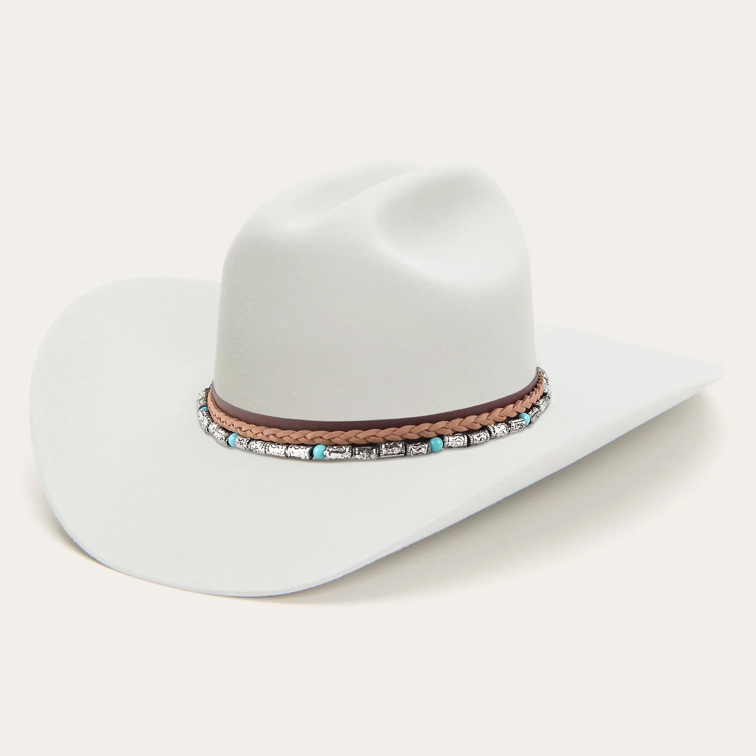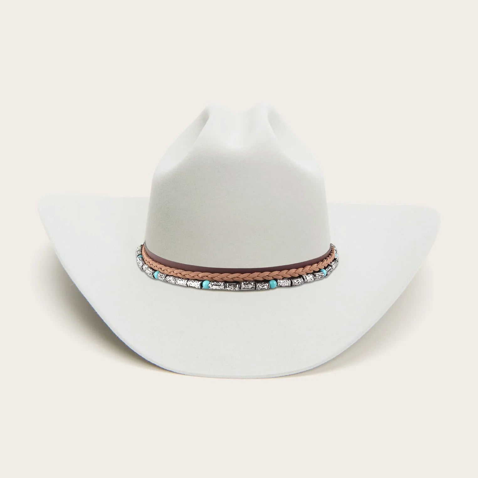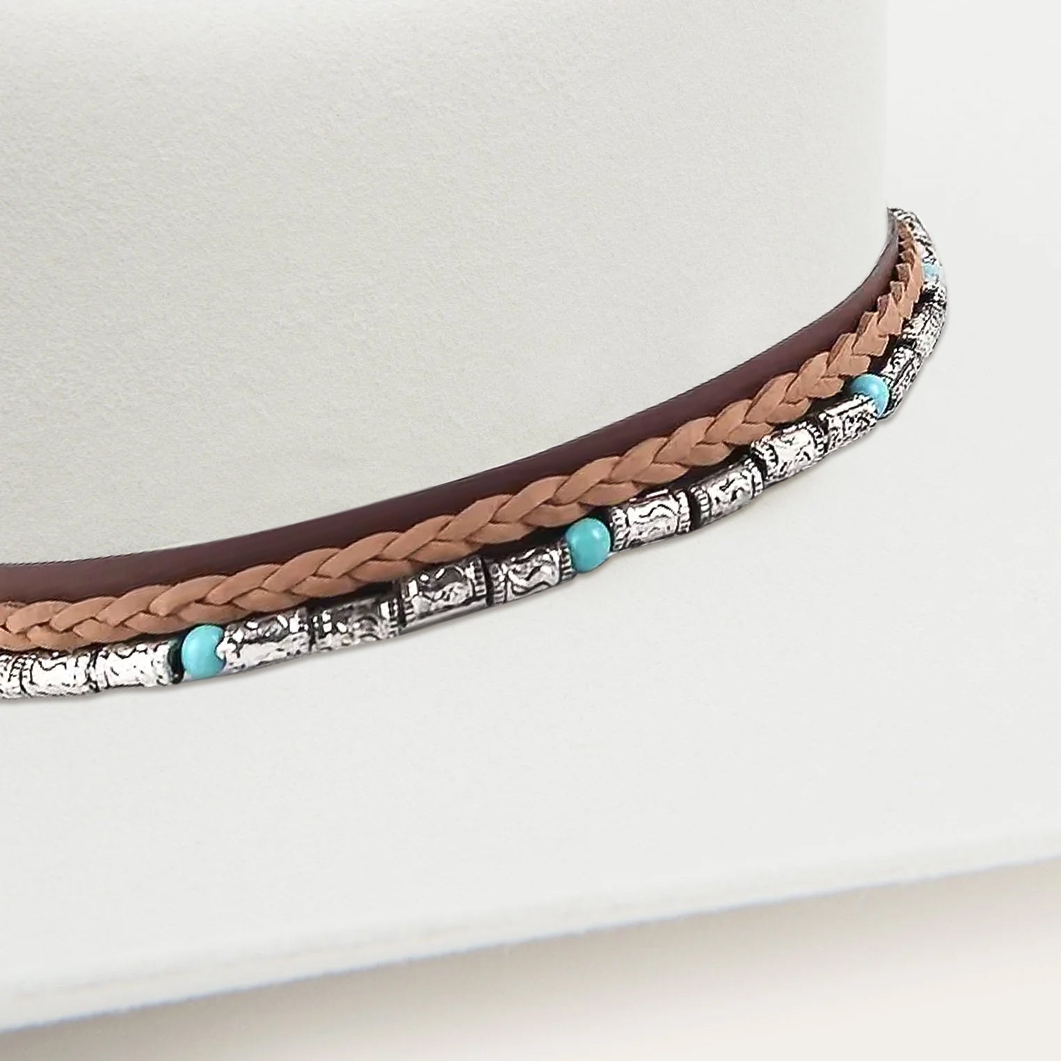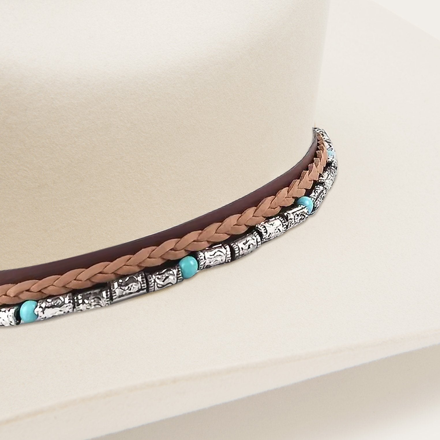 Elevate your style with this premium fur felt hat featuring a classic cattleman crown and a stylish Hatband. Crafted with quality sweatband and satin liner, this hat ensures both comfort and durability. The 4-inch brim and 4 5/8-inch crown add a touch of timeless elegance to any outfit, making it a versatile and sophisticated choice for any occasion.