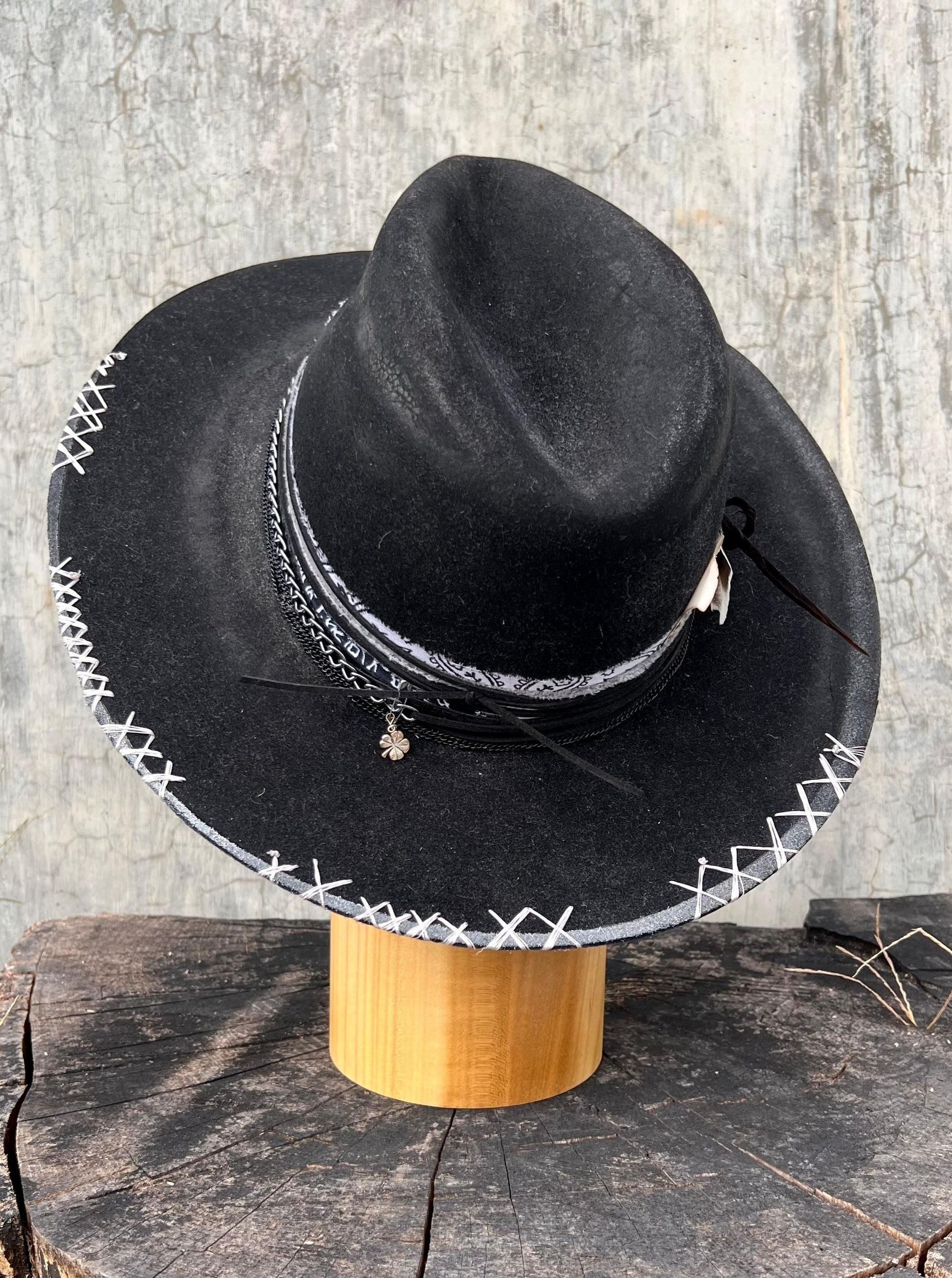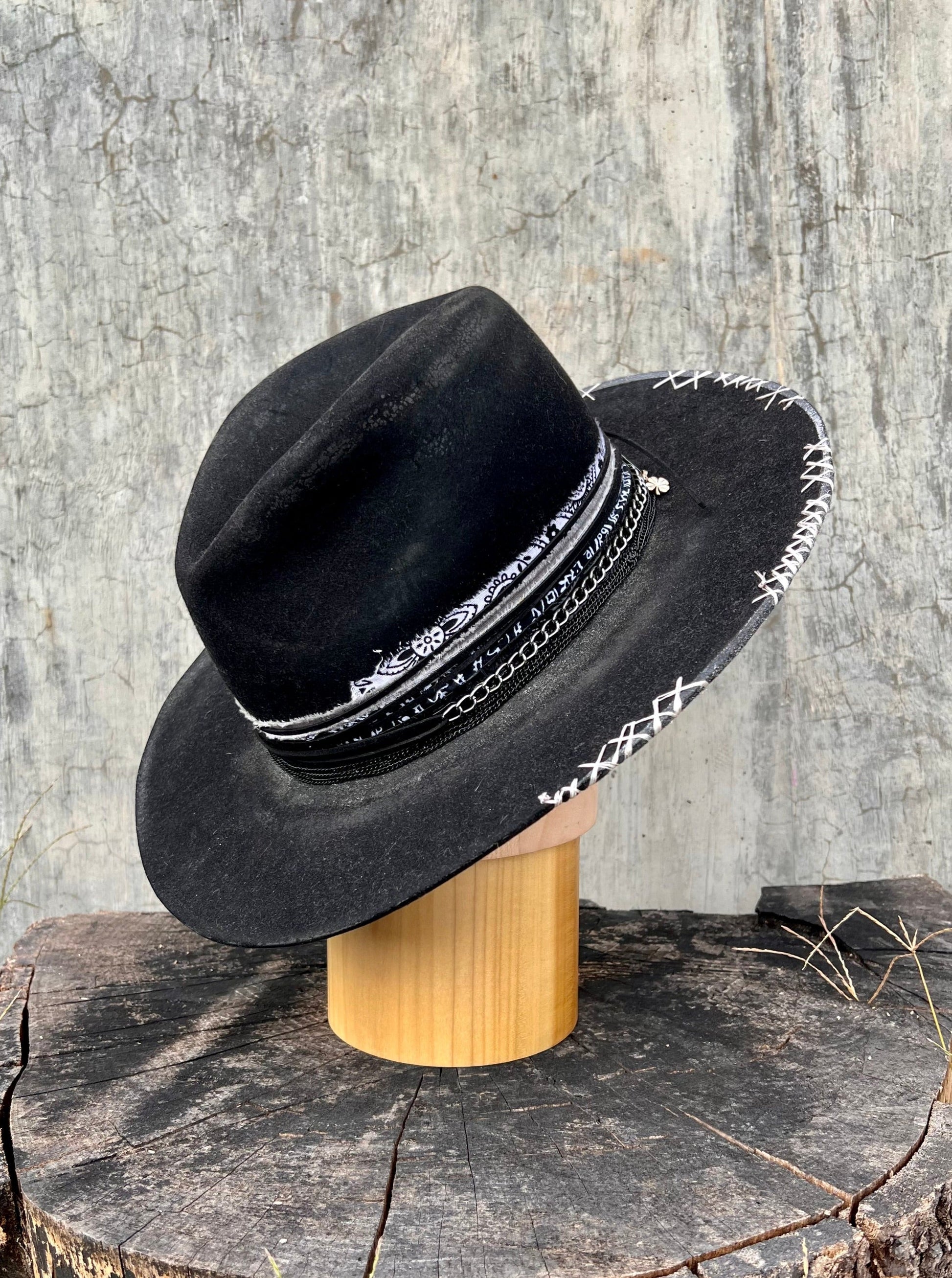 "Inkwell Vintage Classic Felt Cowboy Hat" is hand-distressed, hand-dyed, and hand-torched, ensuring no two share the same color or design. Each piece is uniquely imperfect, with subtle variations from product images.