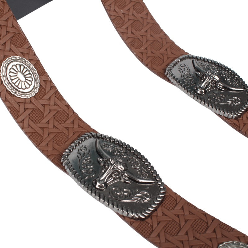 Leather Bison Head Decorative Hat Band