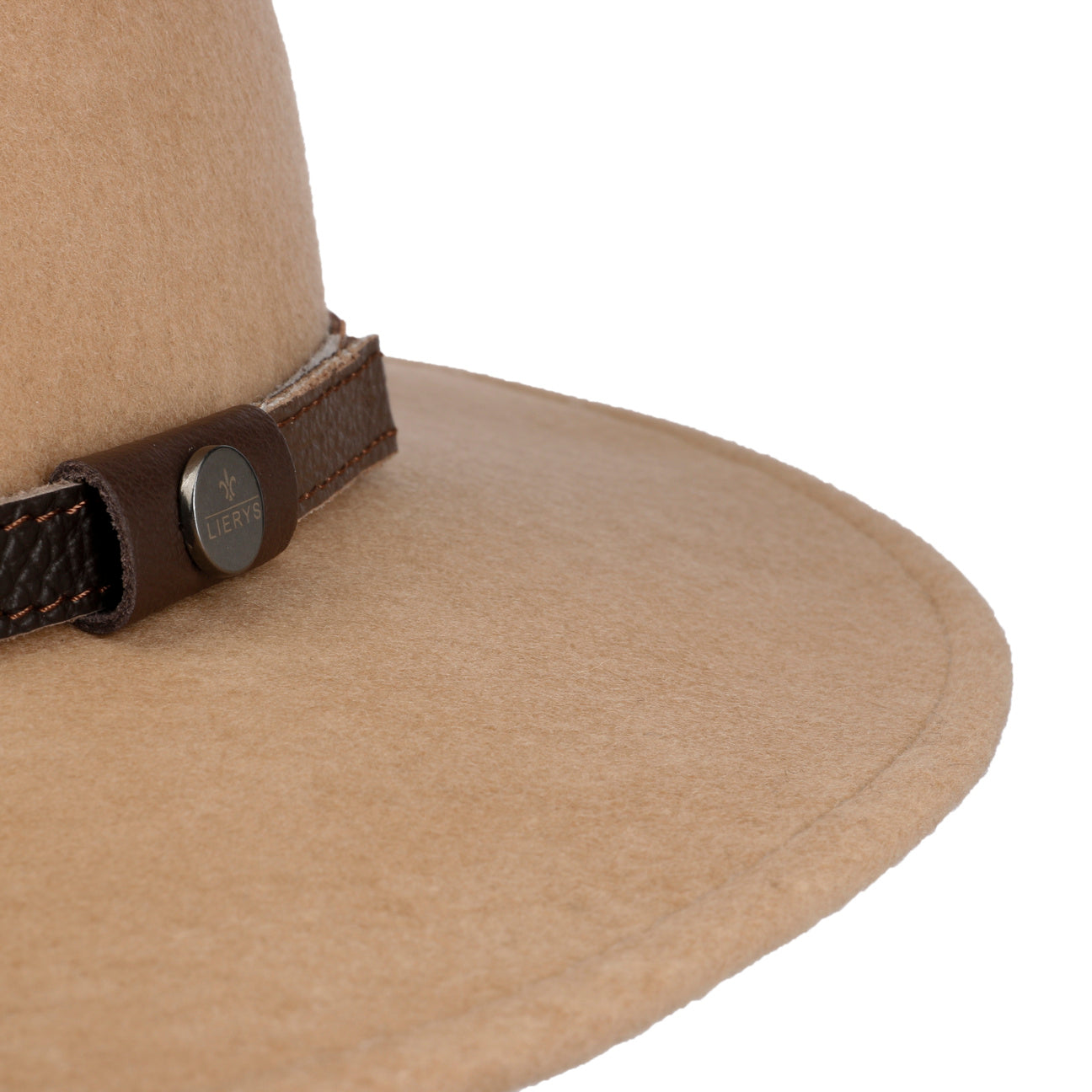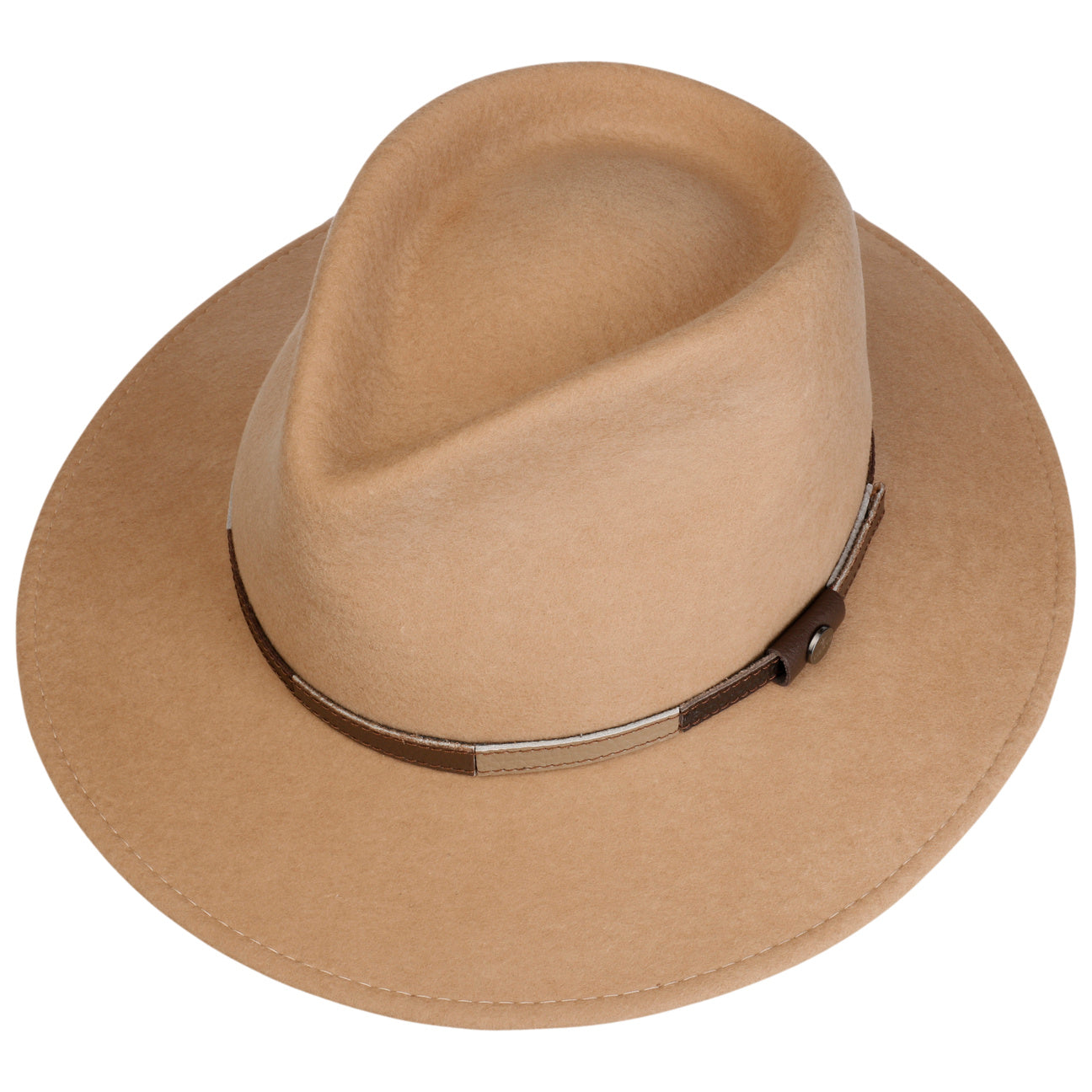 Can an elegant hat made of 100% wool felt be so incredibly practical? Its wide-brimmed travel hat wards off wind and rain and can also be packed away in the suitcase when not in use. With a hearty nudge, the Italian beauty can quickly be brought back into shape. The multicoloured leather band adds a special touch of chic.