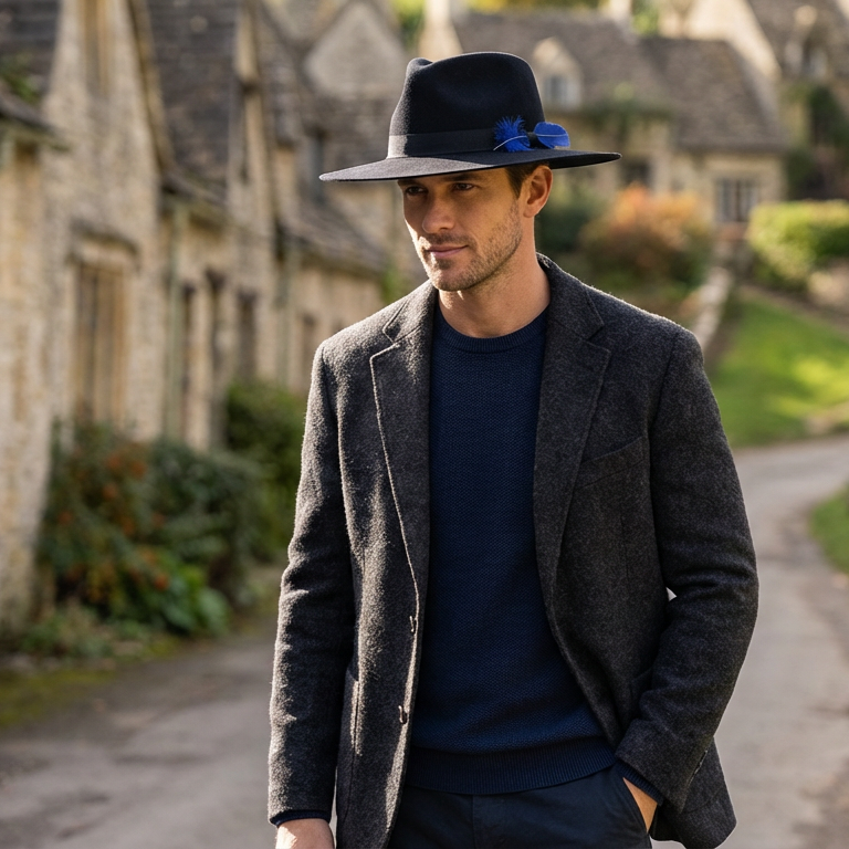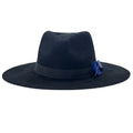 Midnight Black Flat-Brim – Blue Feather Accent