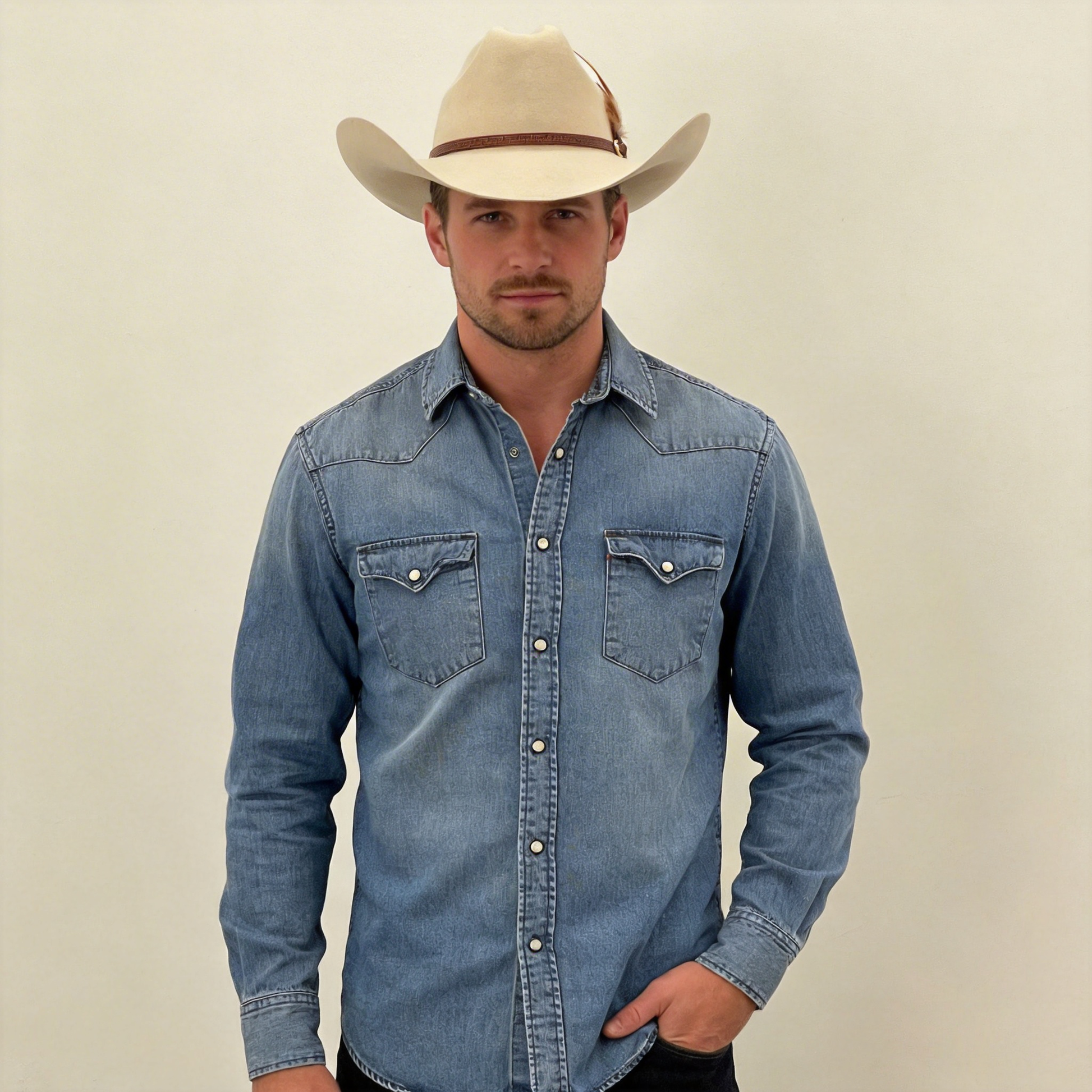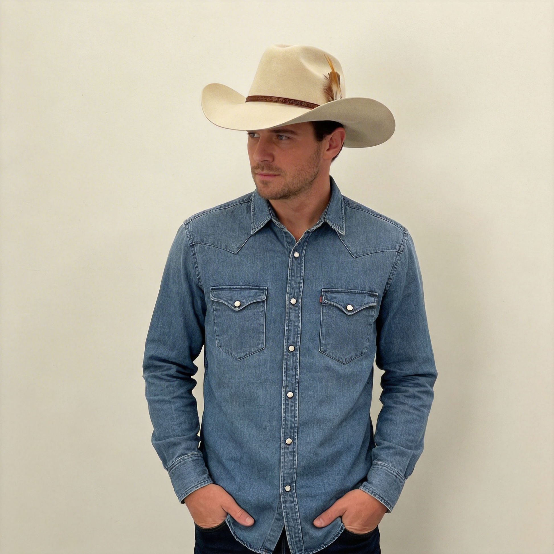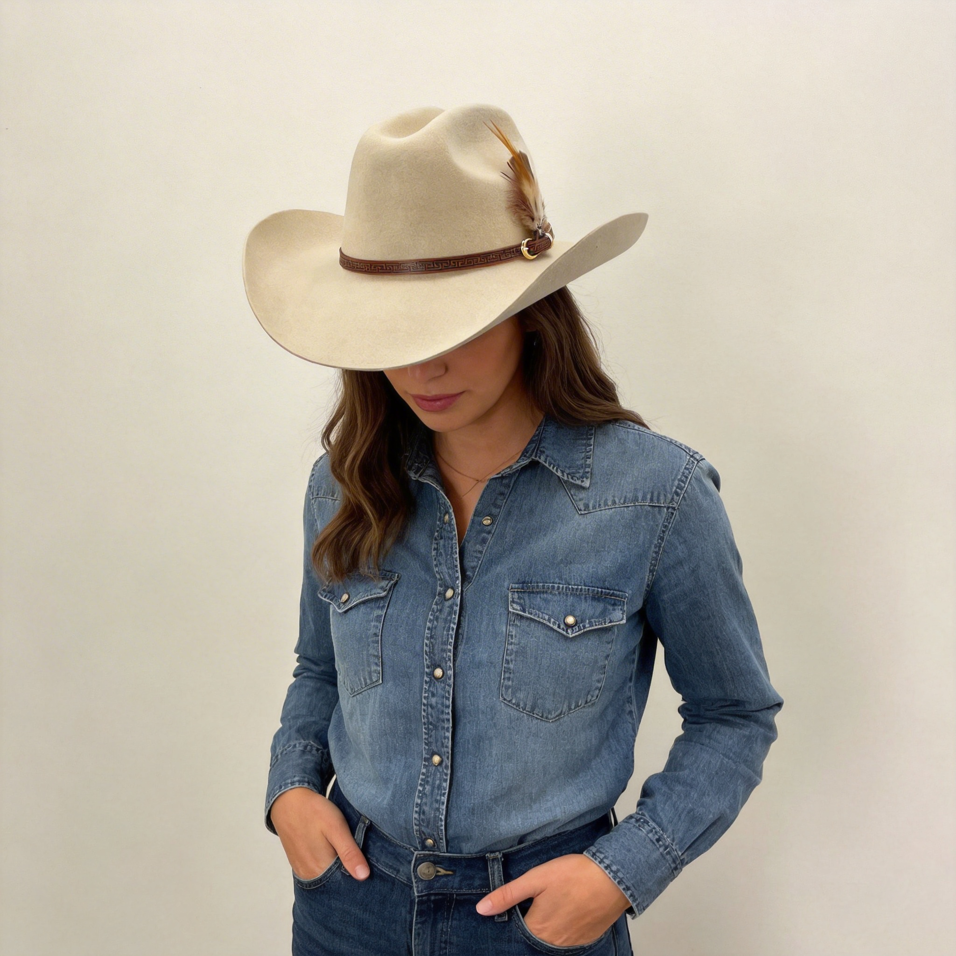 Oatmeal Cowboy – Custom Narrow Band & Feather