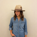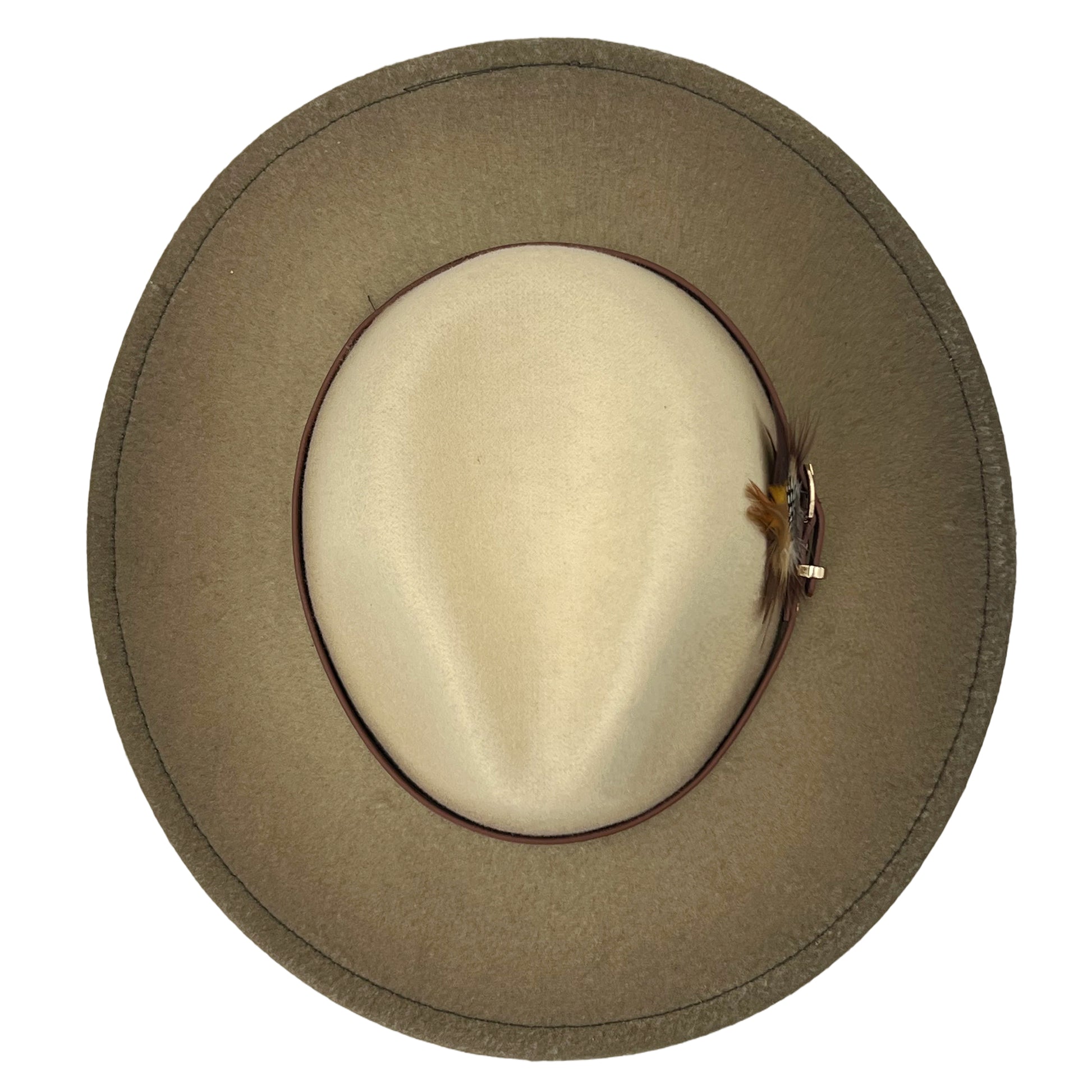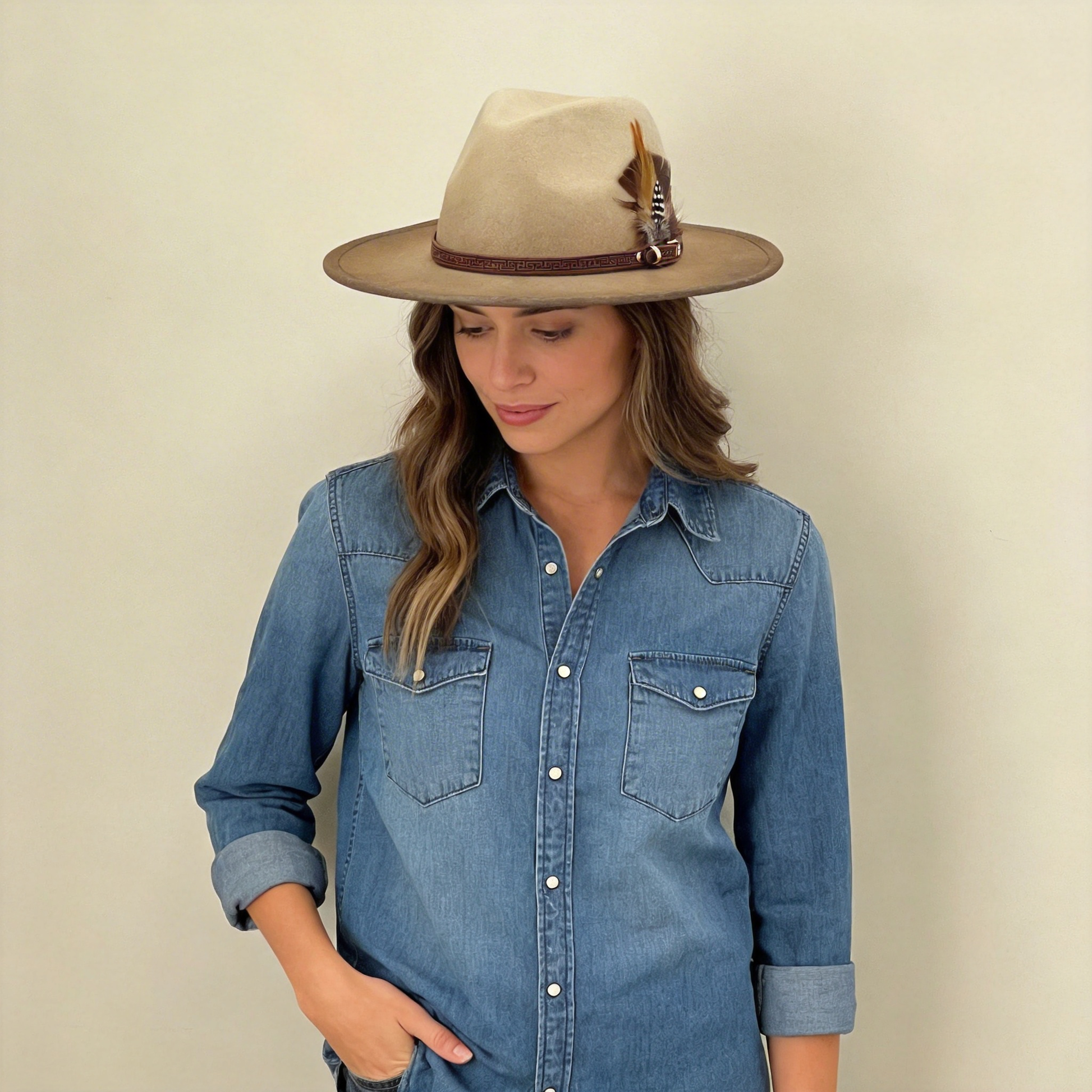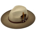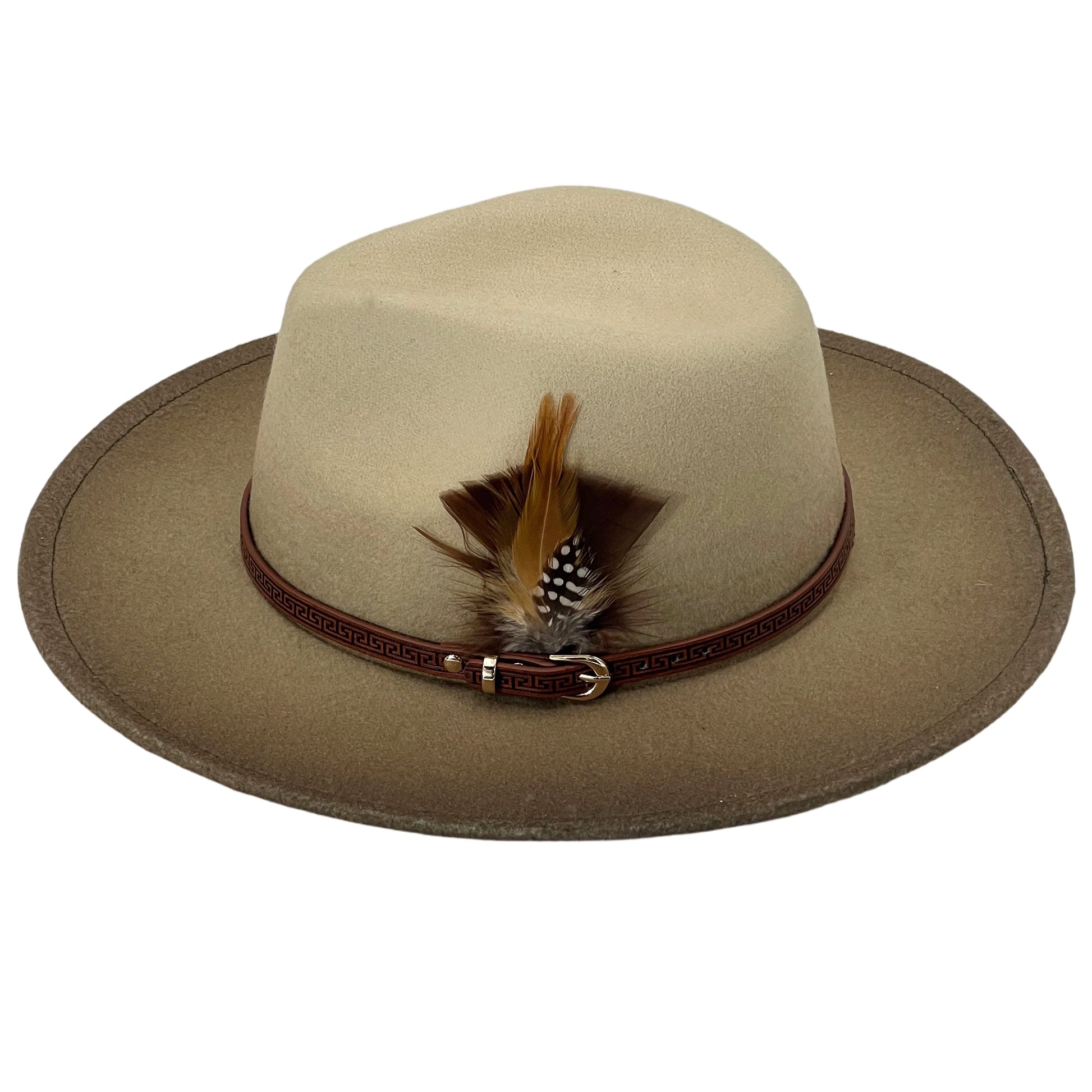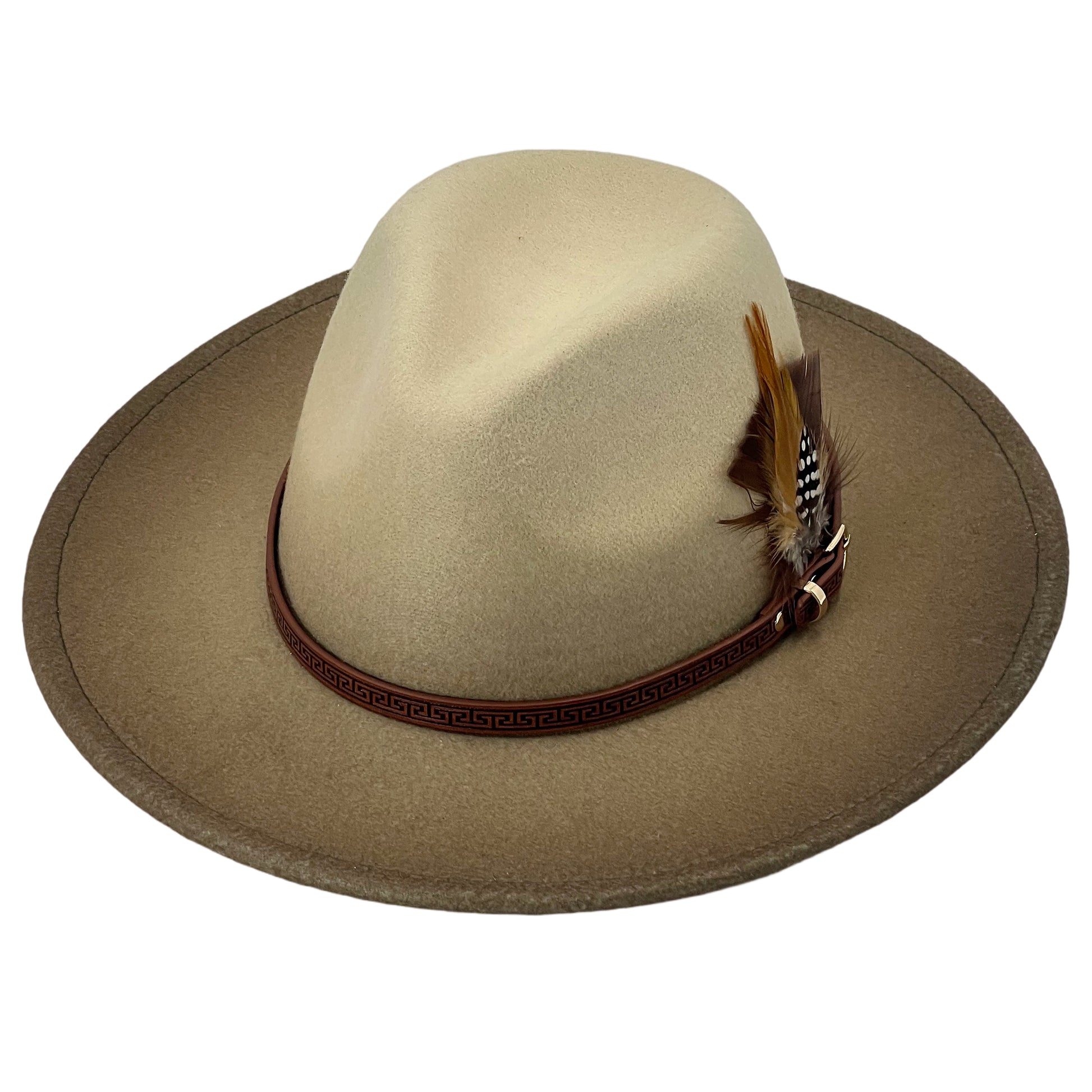 Ombre Beige Flat-Brim – Custom Leather Band & Feather
