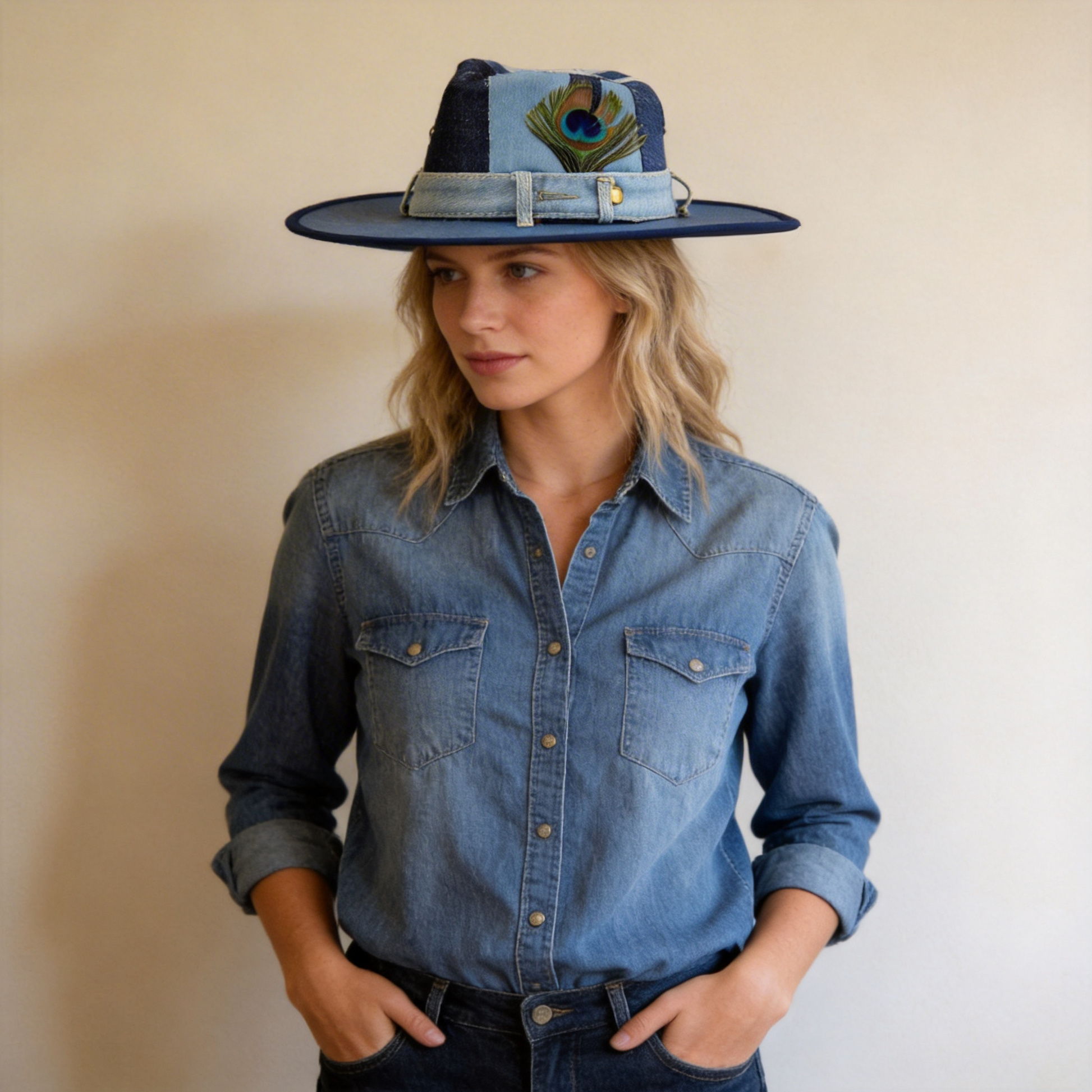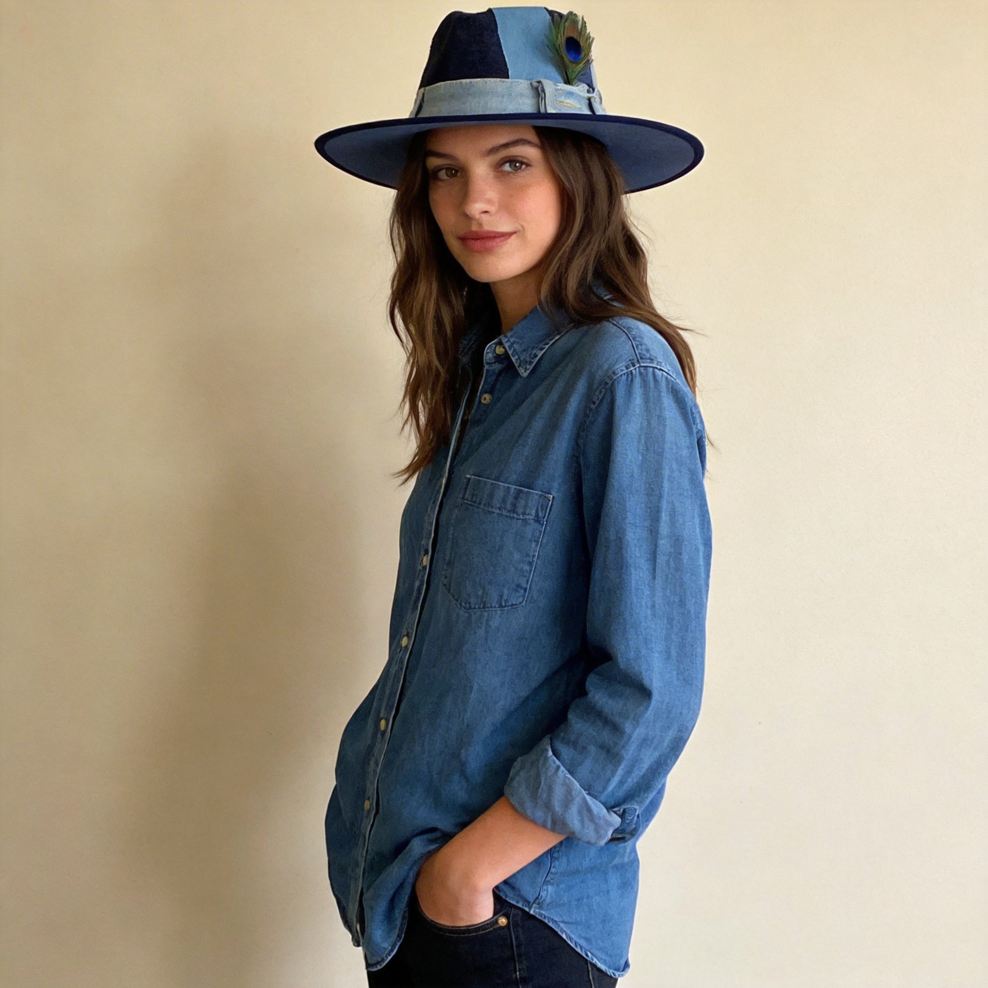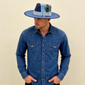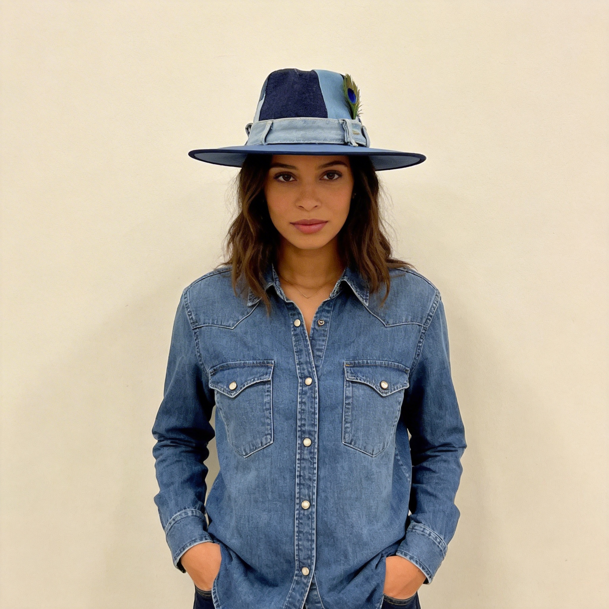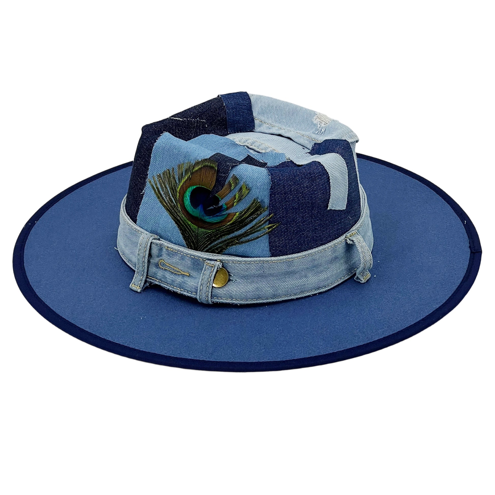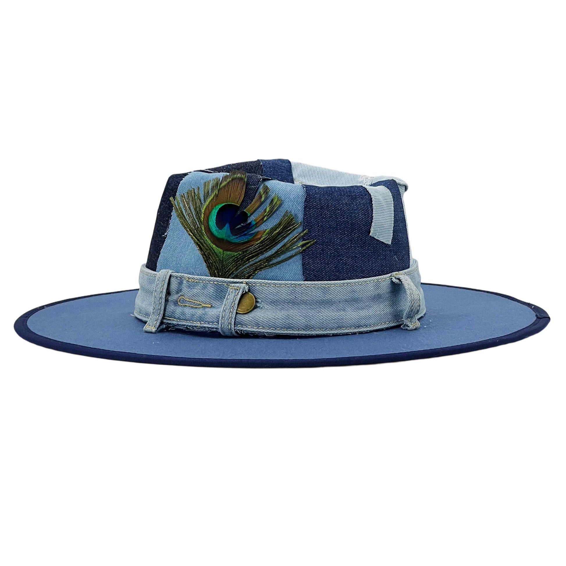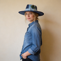 Patchwork Denim Wide-Brim Hat