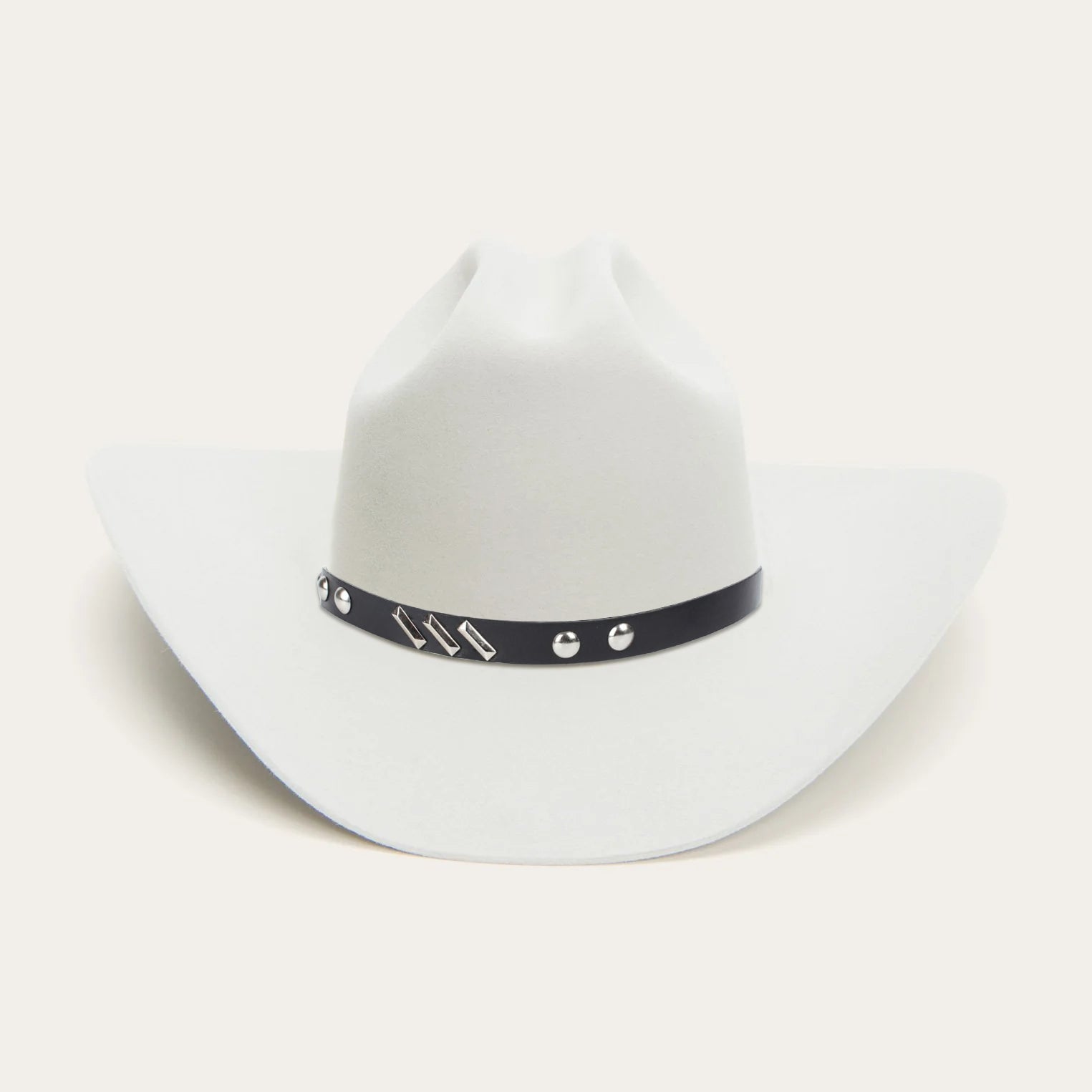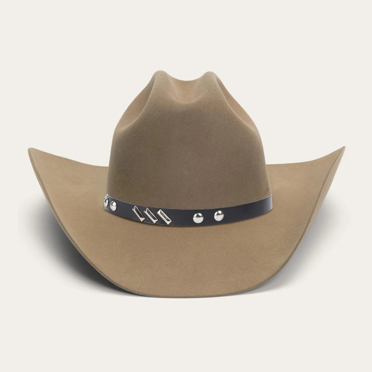 Elevate your style with this premium fur felt hat featuring a classic cattleman crown and a stylish Leather Hatband. Crafted with quality sweatband and satin liner, this hat ensures both comfort and durability. The 4-inch brim and 4 5/8-inch crown add a touch of timeless elegance to any outfit, making it a versatile and sophisticated choice for any occasion.