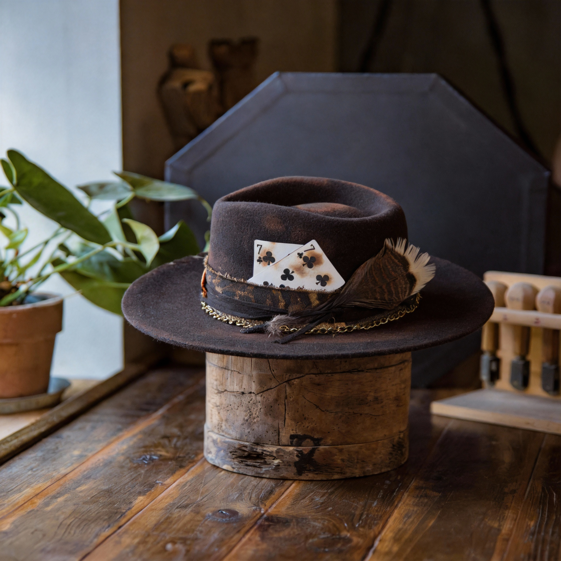 Your brim is very impressionable! Storage is vitally important to maintaining the shape of your brim. Hats with brims turned down should always be stored upside down. Pressure is taken off the brim by placing the hat on its crown, thus maintaining its form.