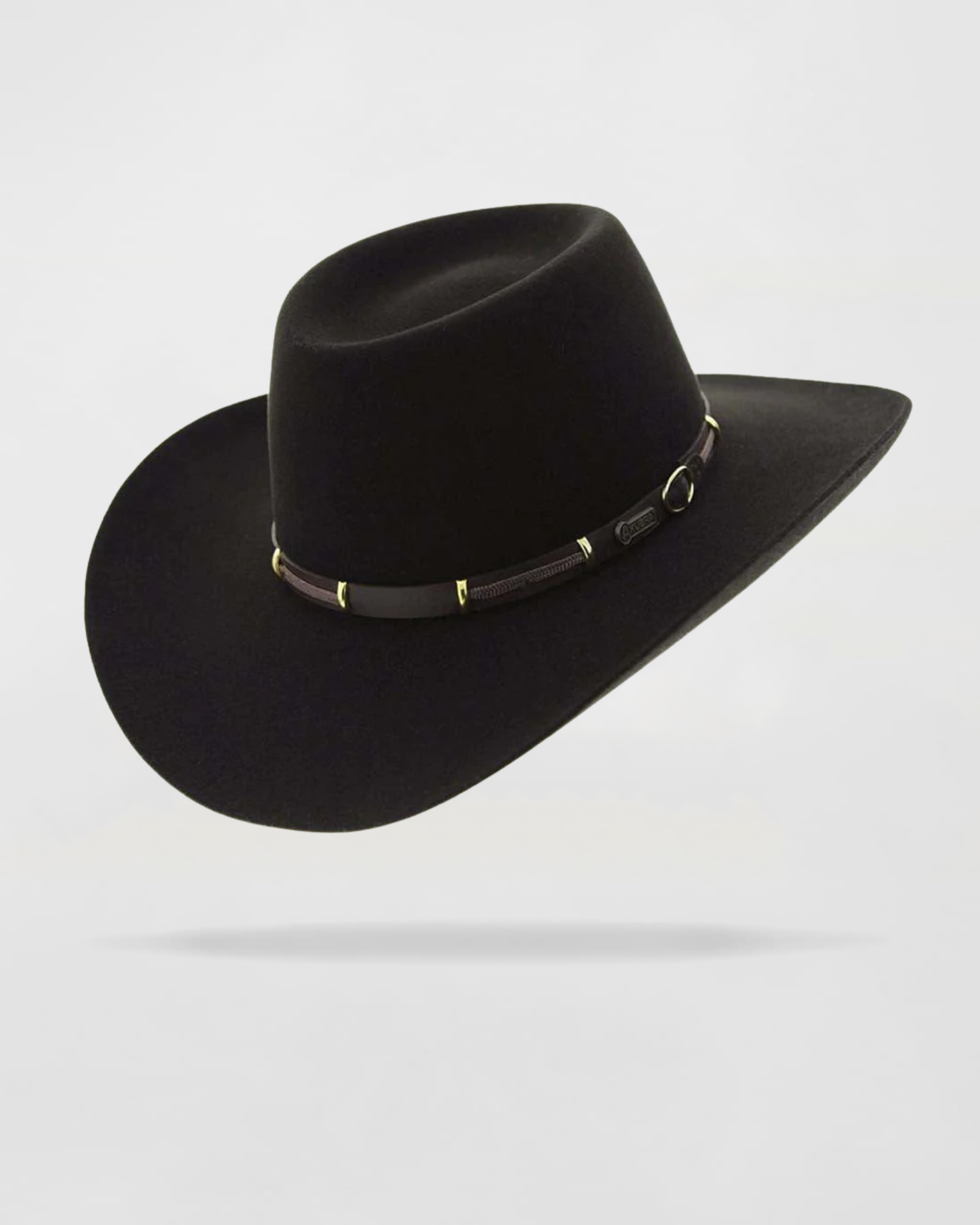 The Rustic Rider Felt Cowboy Hat In Black is a timeless hat that never goes out of style. Crafted from durable fabric and felt, it features a chic design and is one of our most versatile and easy-to-wear wool hat styles. This enduring essential is perfect for any adventure.