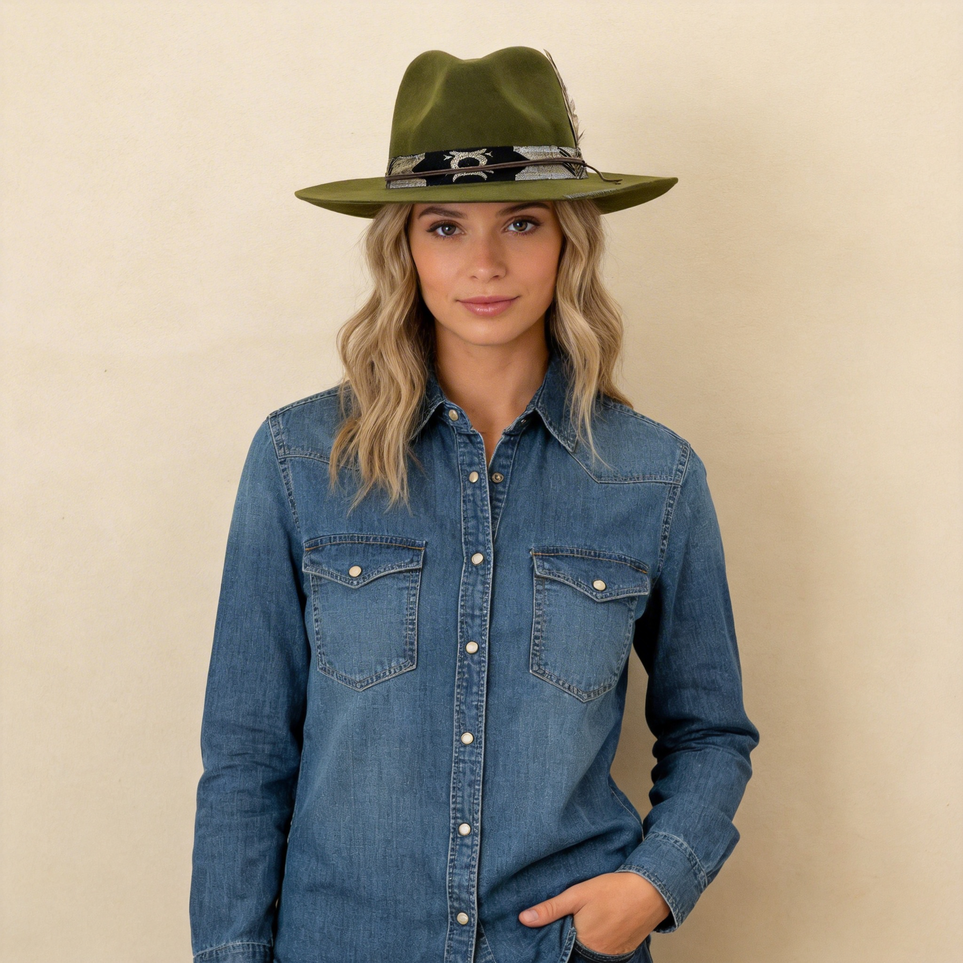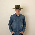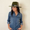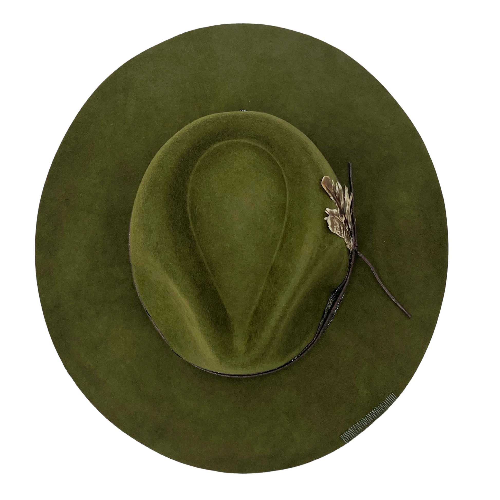 Sage Green Wide-Brim – Shimmer Band & Feather