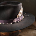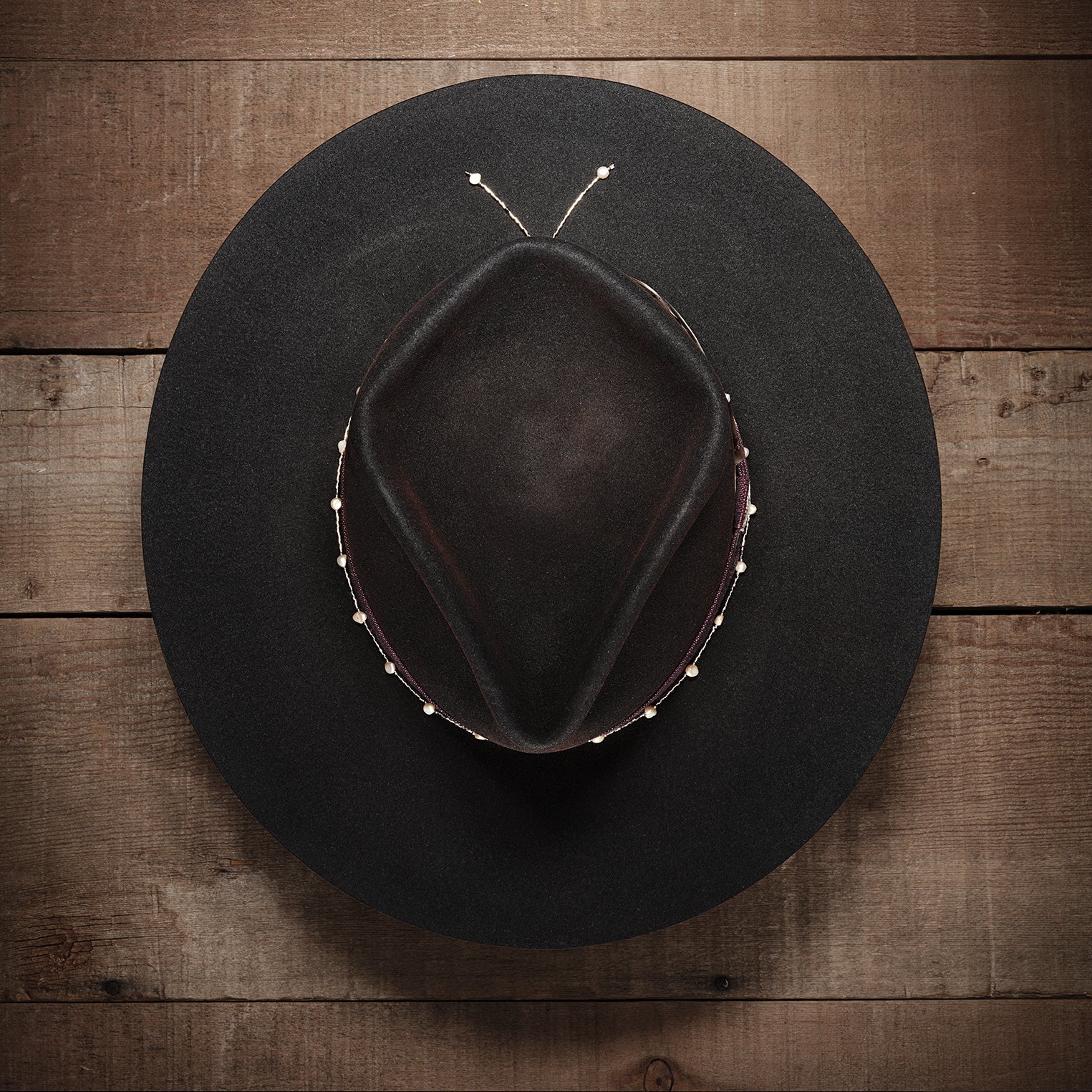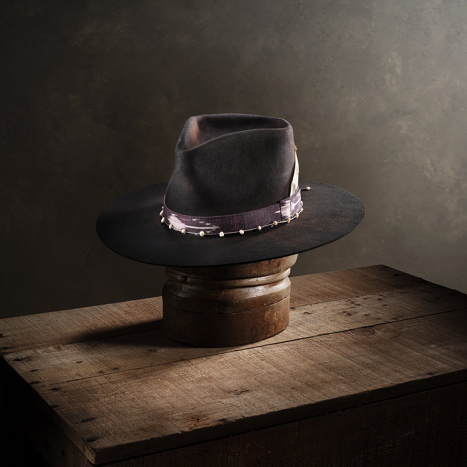 "St. Claire Vintage Felt Hat" is hand-distressed, hand-dyed, and hand-torched, ensuring no two share the same color or design. Each piece is uniquely imperfect, with subtle variations from product images.