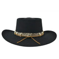 The Crocodile Dundee Hat was made famous by Mr. Paul Hogan in his three well-known films as the crocodile wrangler. Being allegedly born in a cave in the Northern Territory of Australia and being raised by Aborigines, people indigenous to the Australian Continent, Dundee had a great passion for the Outback and the dangers that came with it. Crocodile Dundee portrays the Australian image through a typical bushman. Encounters with saltwater crocodiles have left him a large scar and many stories to tell. Our famous Crocodile Dundee Hat was inspired by the classic Australian Outback Style, which is well known for the genuine crocodile teeth surrounding the band. We have done the work for you and have custom designed a line of hats made popular in this classic Australian Outback film. All hats are shaped by hand, by our hat experts. Your hat arrives at your door shaped and ready to wear.