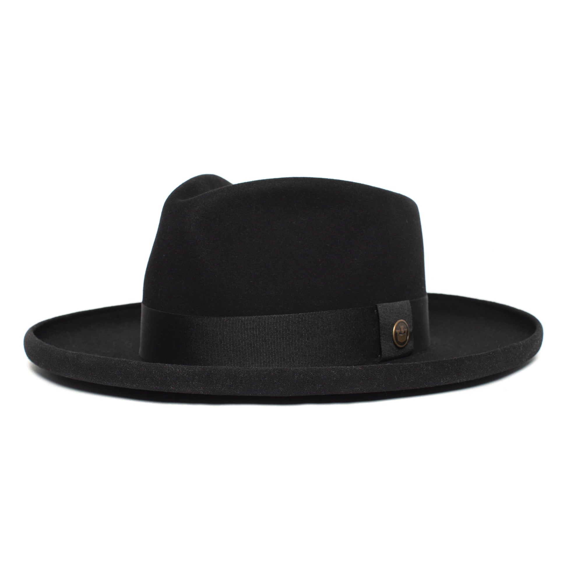 Elevate your style with our exquisite Fedora crafted from luxurious fur felt. Featuring a stylish teardrop crown and accented with a sophisticated grosgrain hatband, this Fedora exudes timeless elegance.